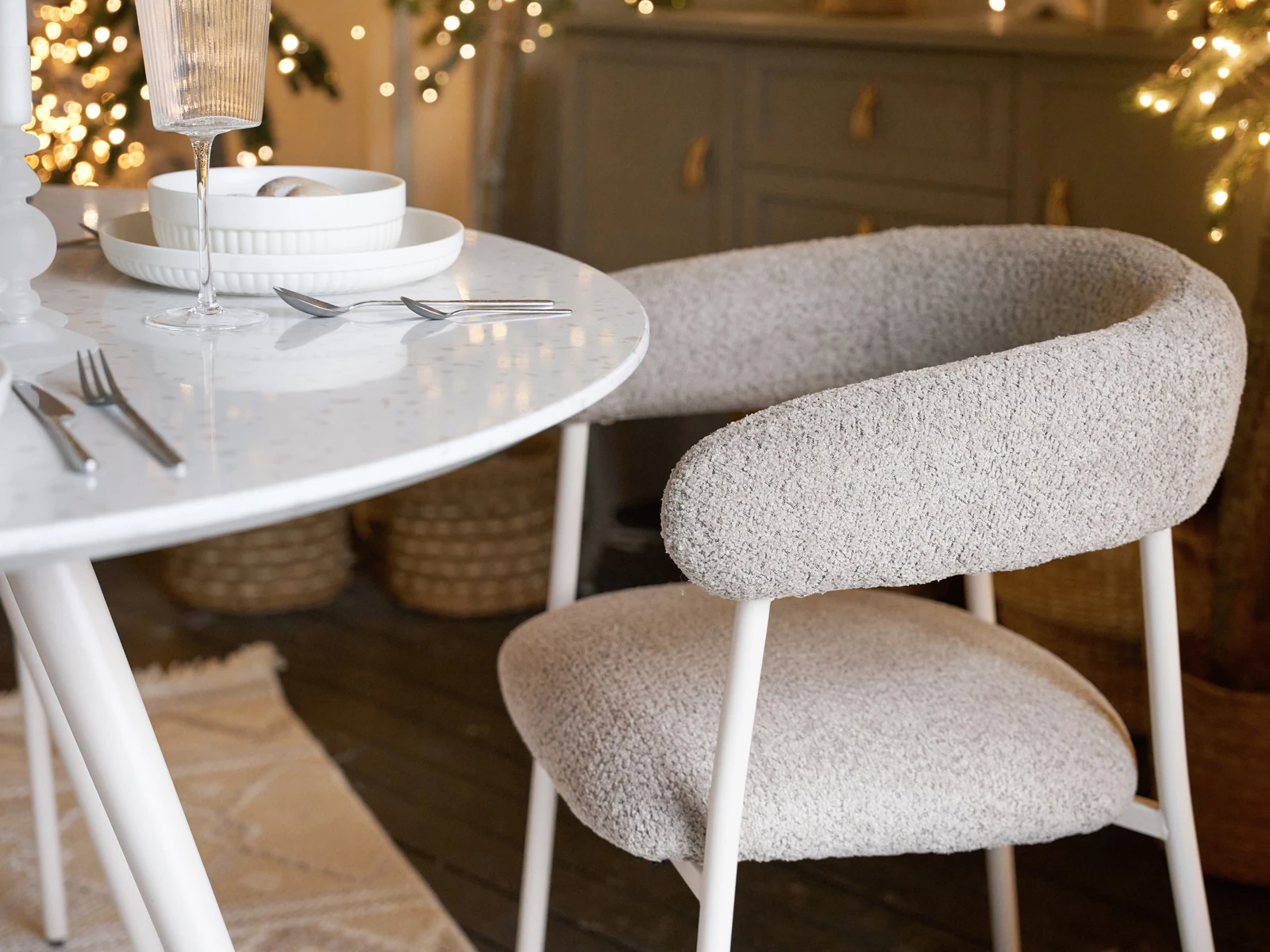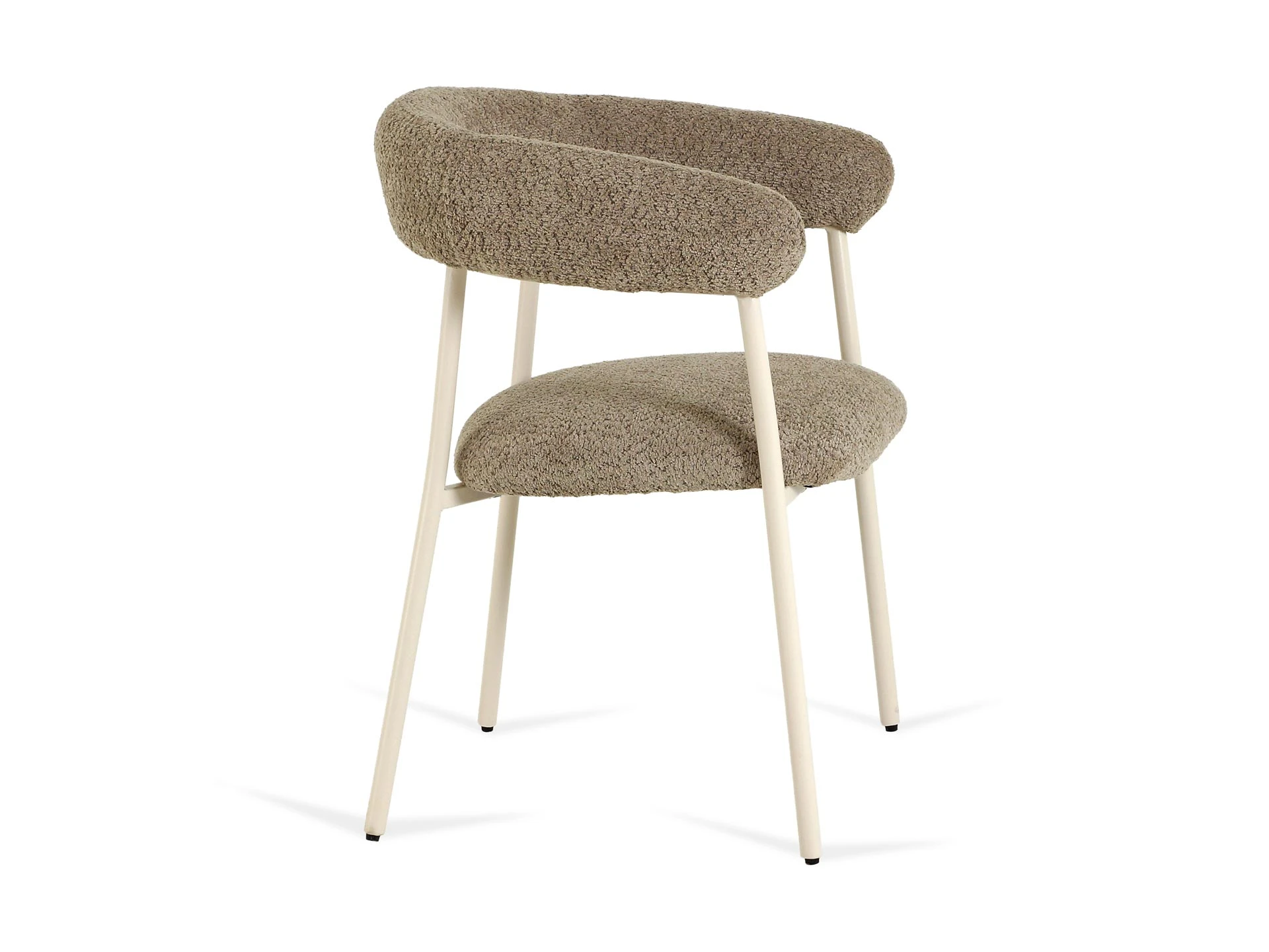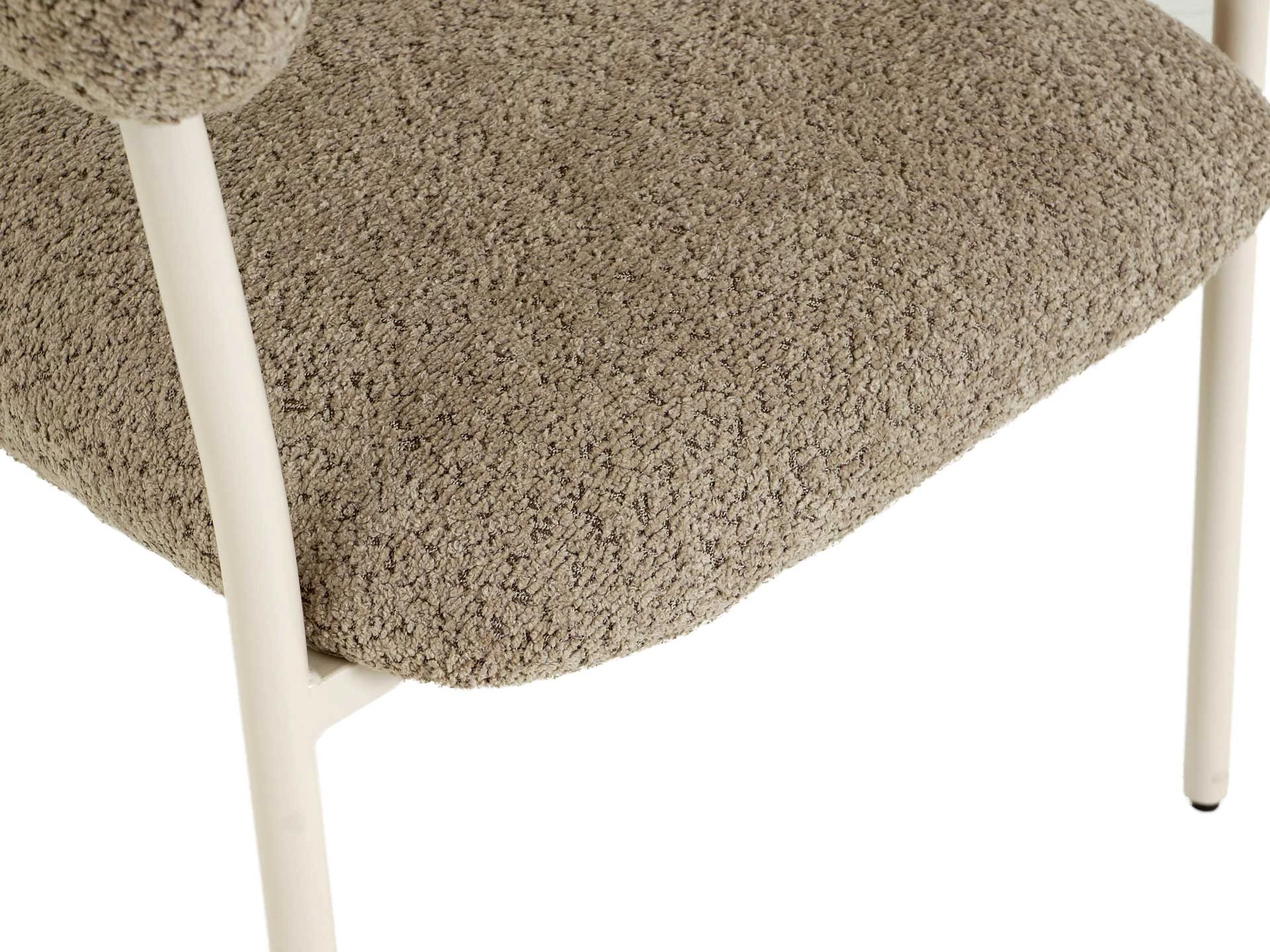 Материал обивки - искусственный мех, материал ножек - металл с кремовым порошковым покрытием. На ножках предусмотрены специальные подпятники, которые предотвращают скольжение и повреждения напольного покрытия.