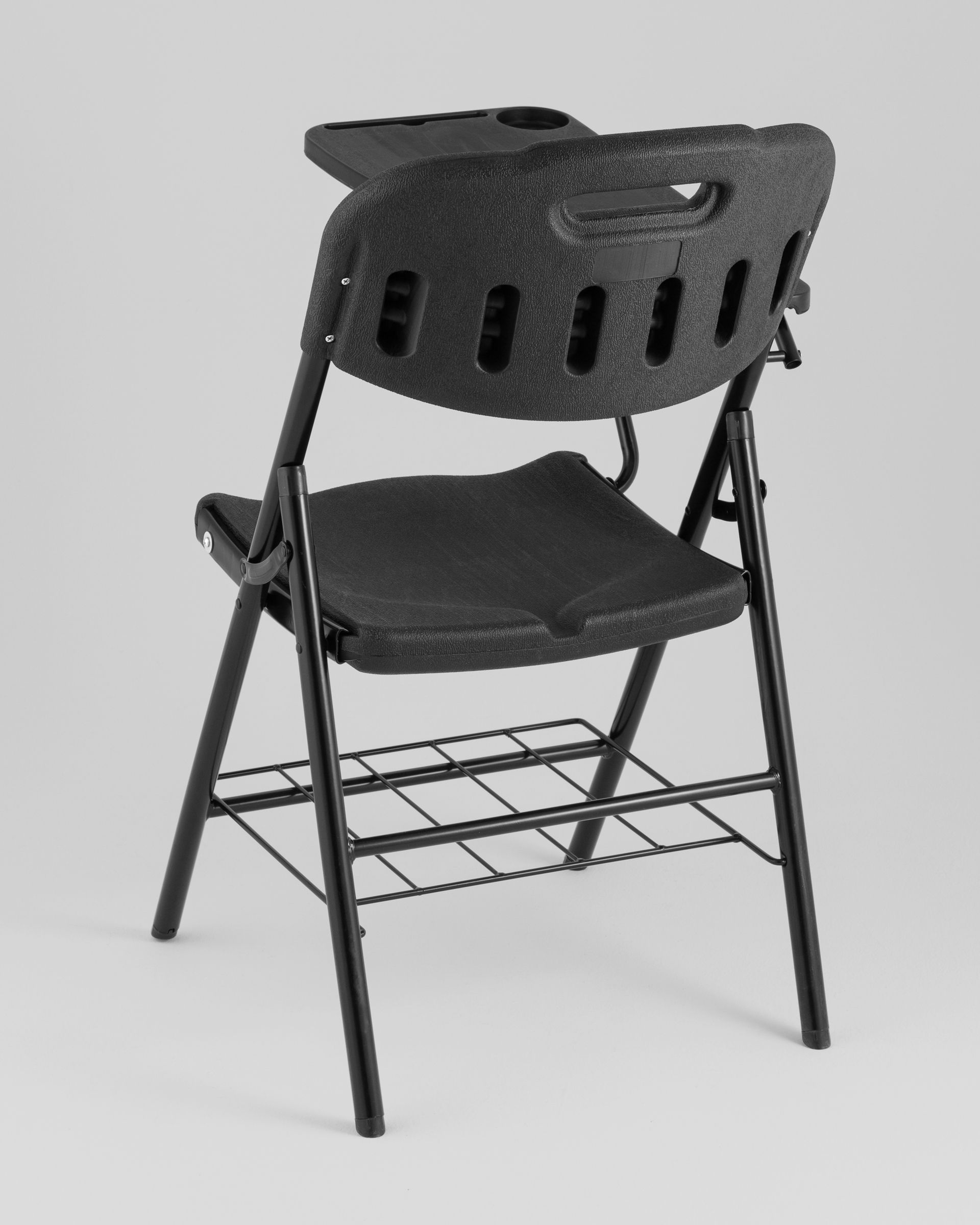 Стул складной банкетный со столиком и полкой черный