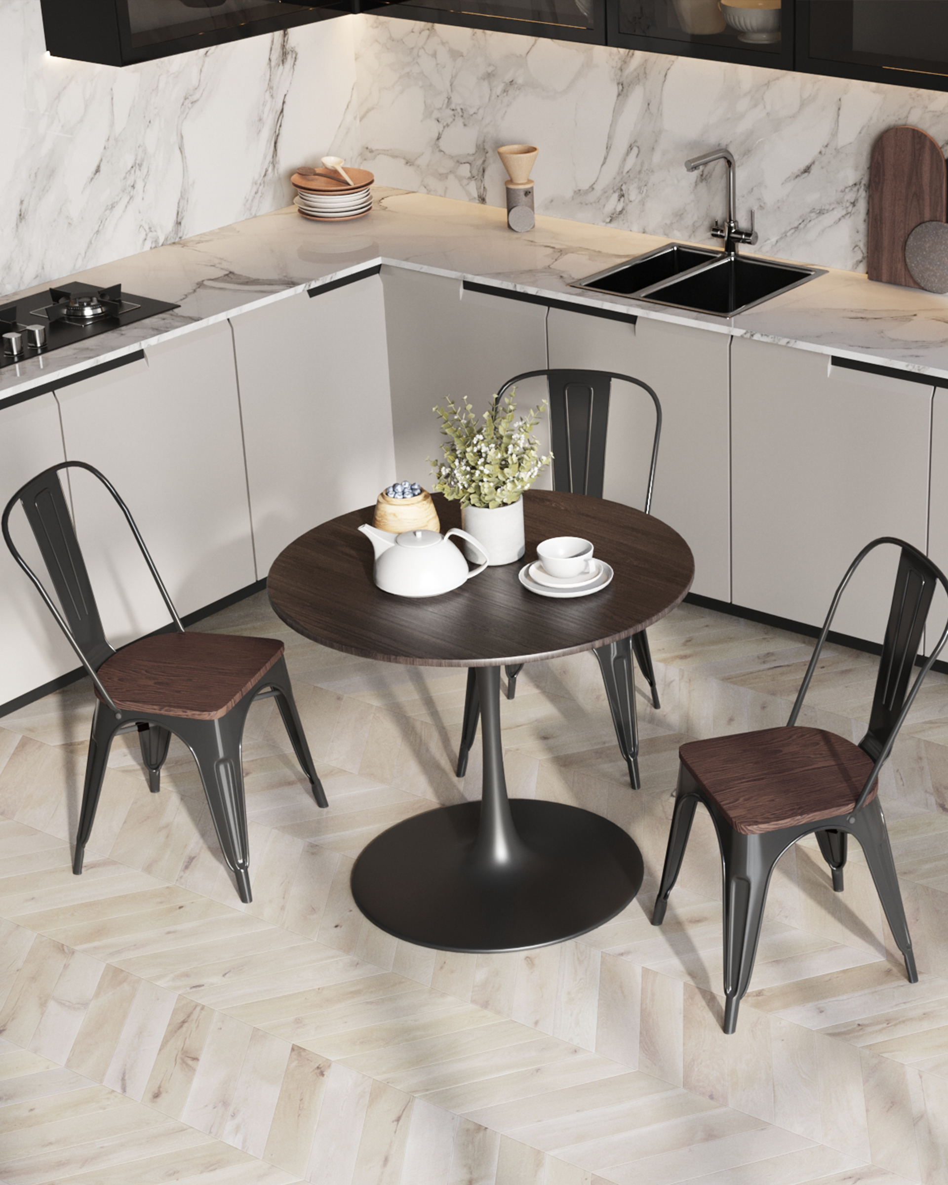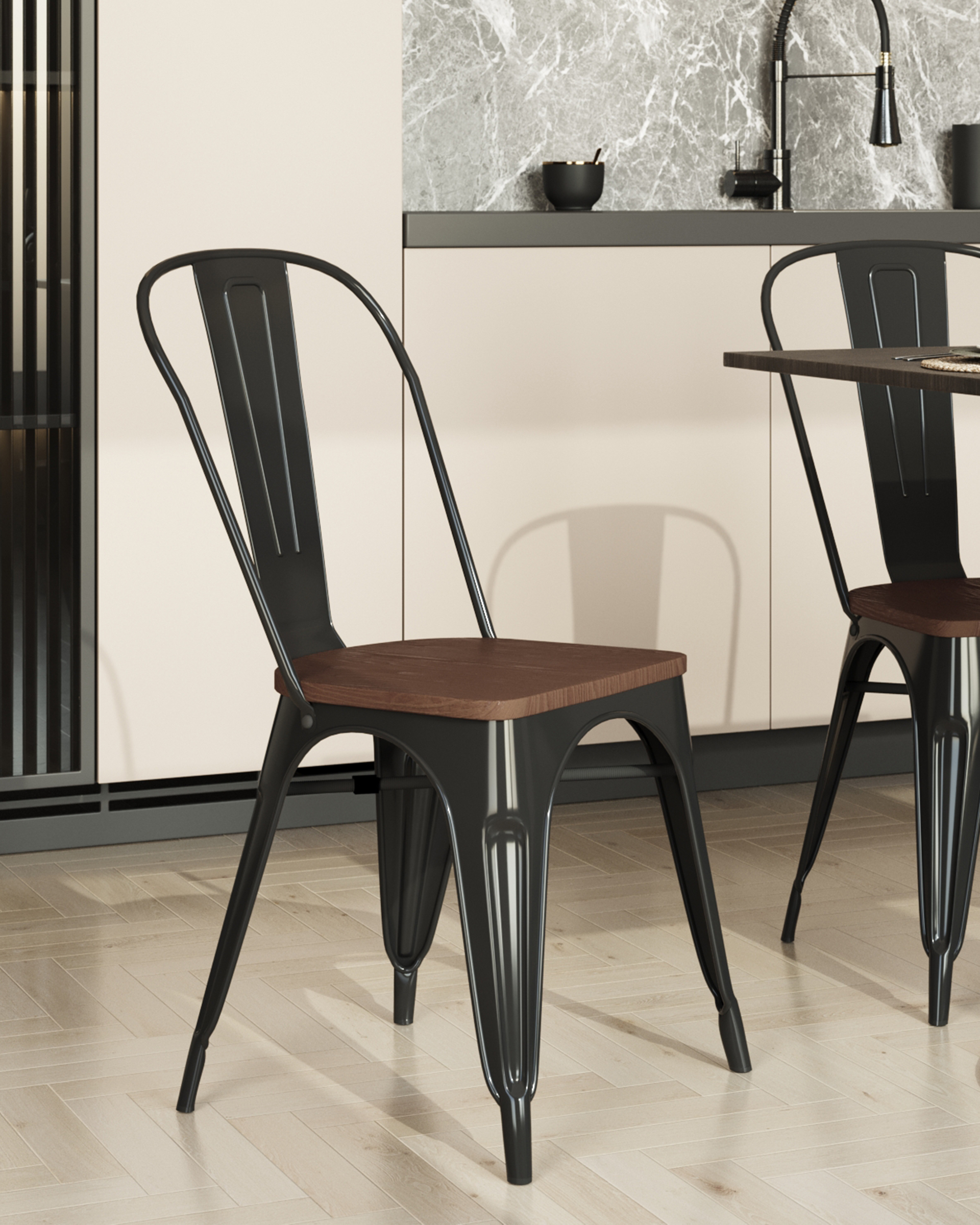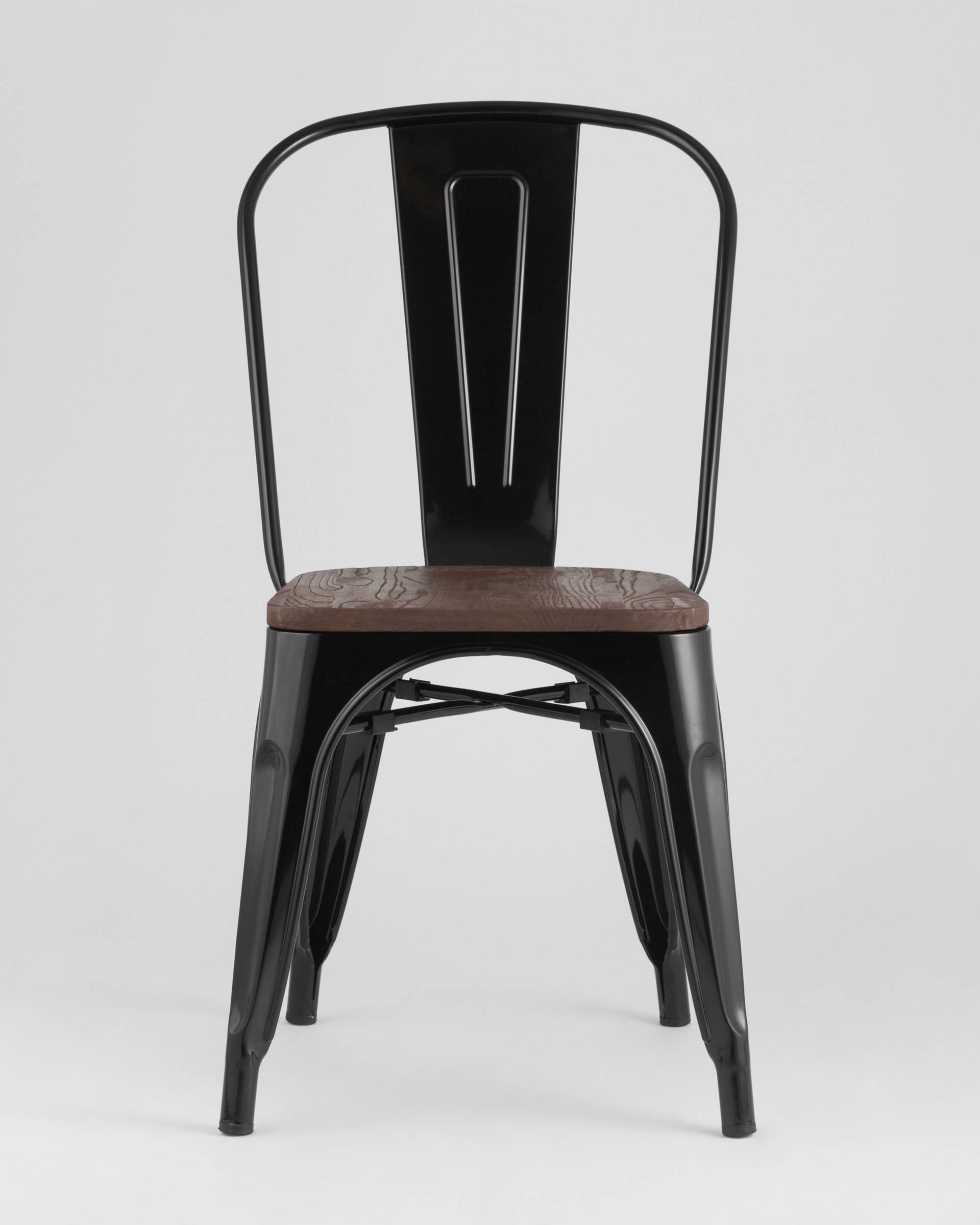 Стул Stool Group TOLIX WOOD черный глянцевый, основание и спинка оцинкованный металл, сиденье тёмное дерево