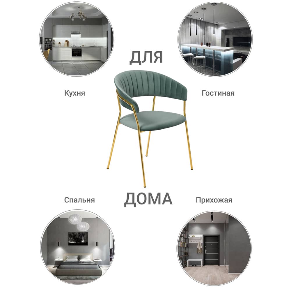 Мягкие спинка и сидение, оригинальный каркас и опоры с декоративным эффектом технологии золочения хромированных деталей.