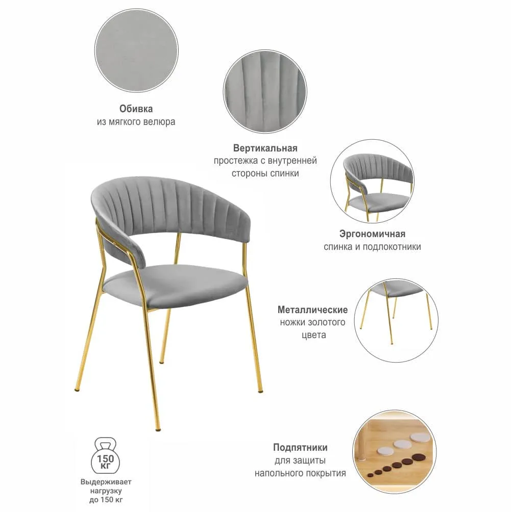 Мягкие спинка и сидение, оригинальный каркас и опоры с декоративным эффектом технологии золочения хромированных деталей.