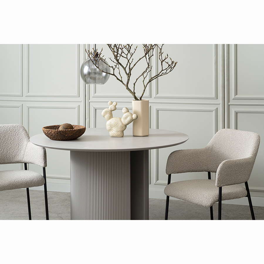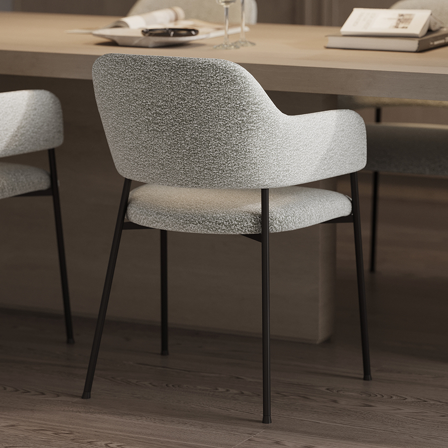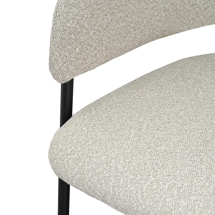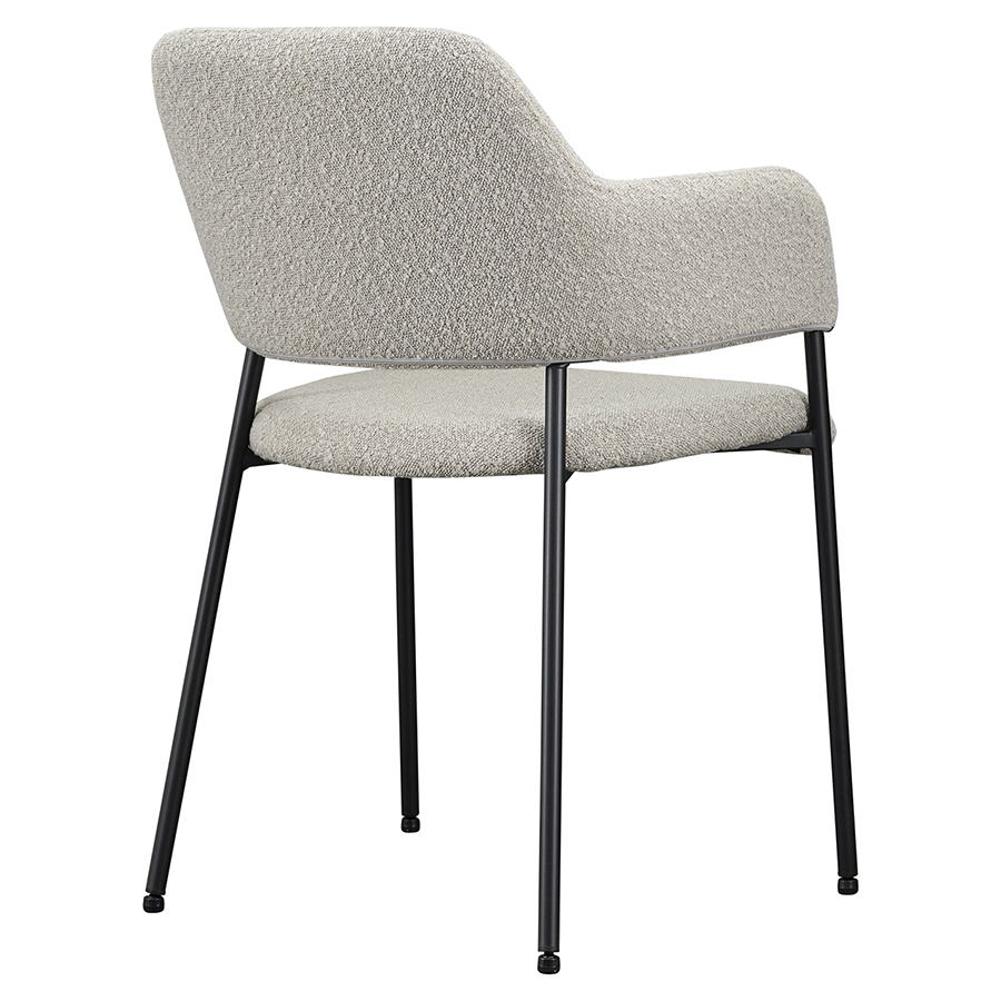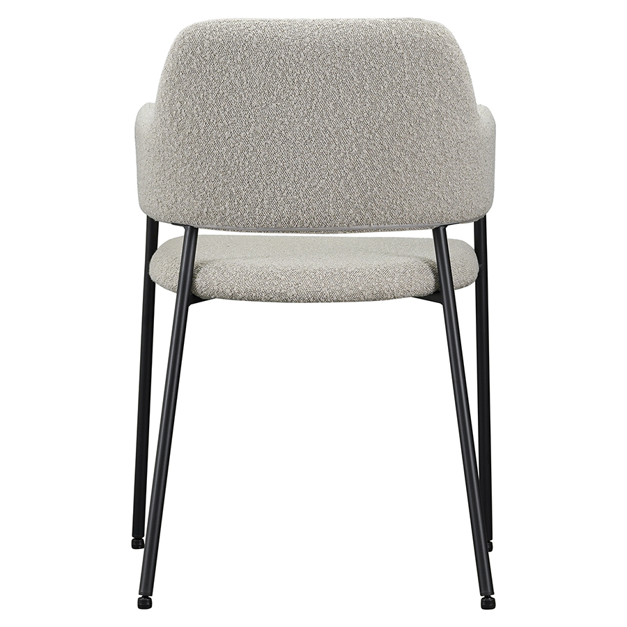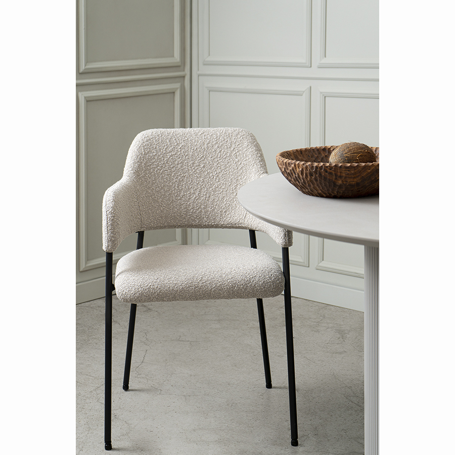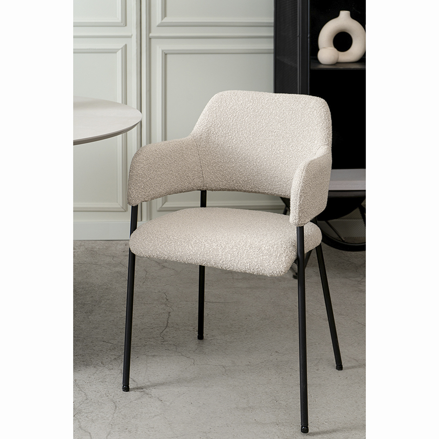 Модель имеет устойчивые ножки из прочной стали. Буклированная обивочная ткань смотрится необычно, добавляет мебели особый шарм и при этом не требует сложного ухода. Комфорт при сидении достигается за счет глубокой посадки и высокой спинки, плавно переходящей в подлокотники. Стул выполнен в спокойной цветовой гамме, что позволяет вписать его в различные варианты оформления помещения.