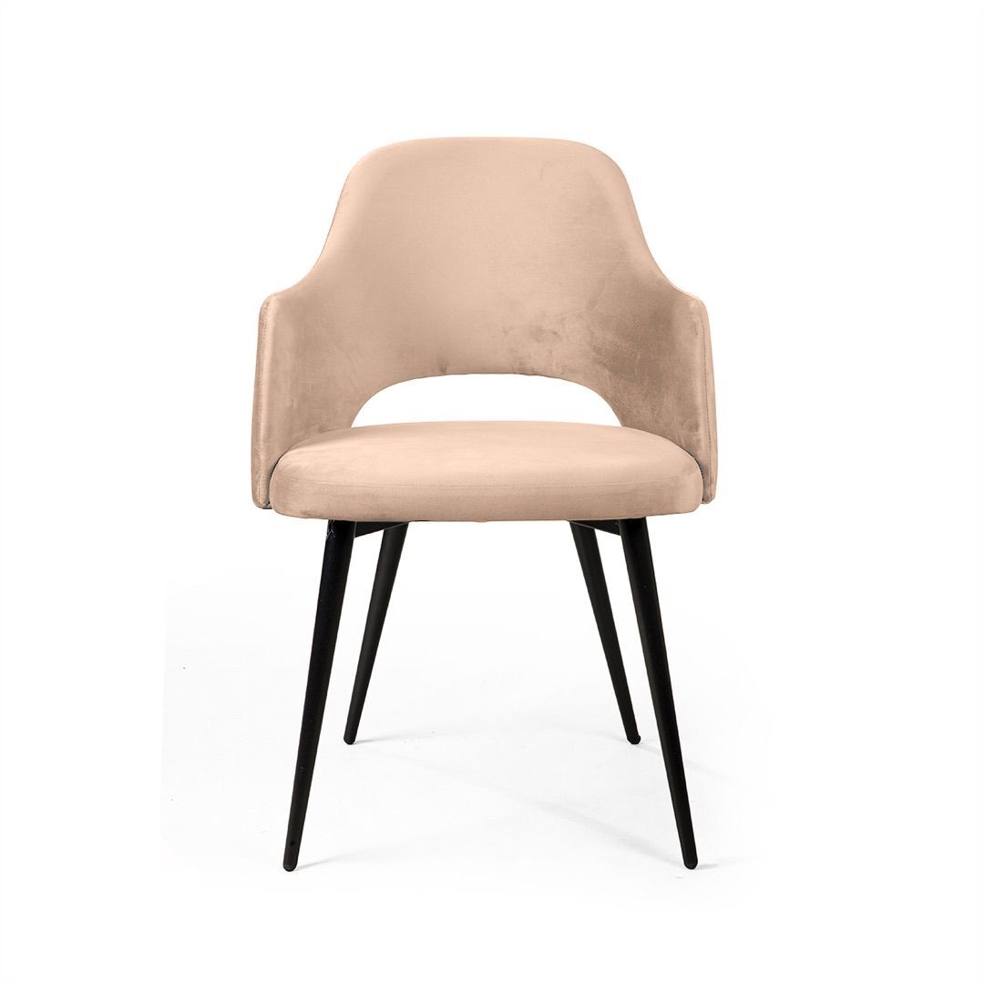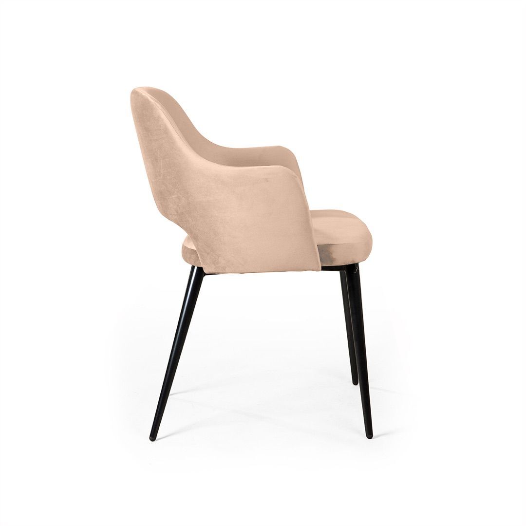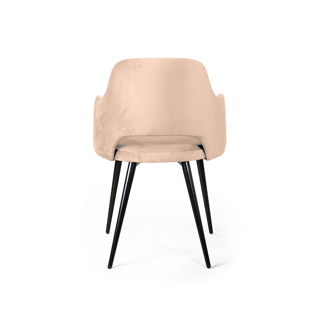 Изюминка стула William – металлические ножки черного матового цвета, излишне скошенные назад, как часть дизайнерской задумки. На ножках предусмотрены специальные пластиковые накладки, которые придают стулу дополнительную устойчивость и защищают пол от царапин.