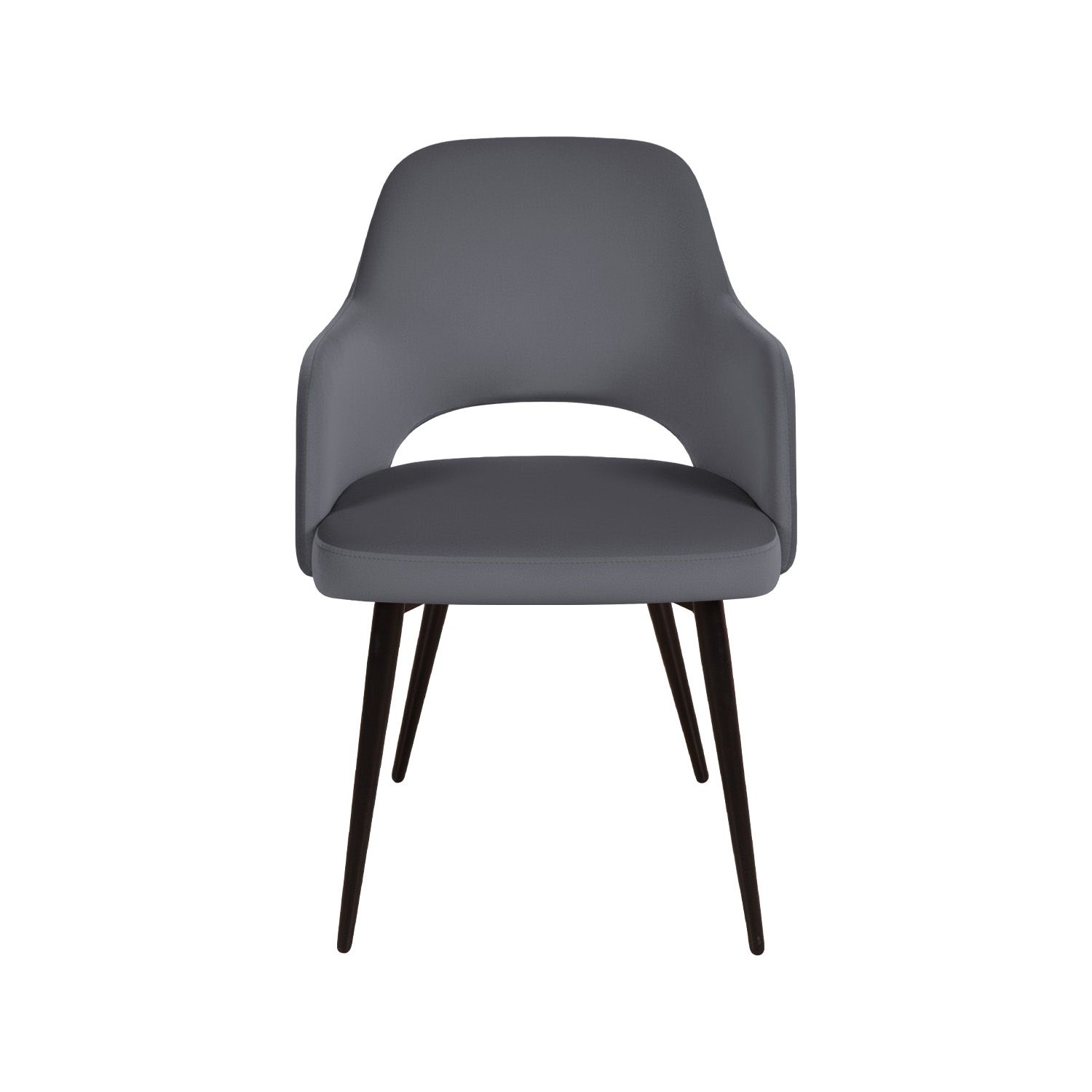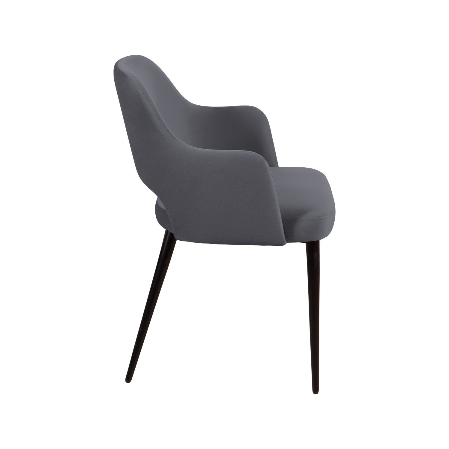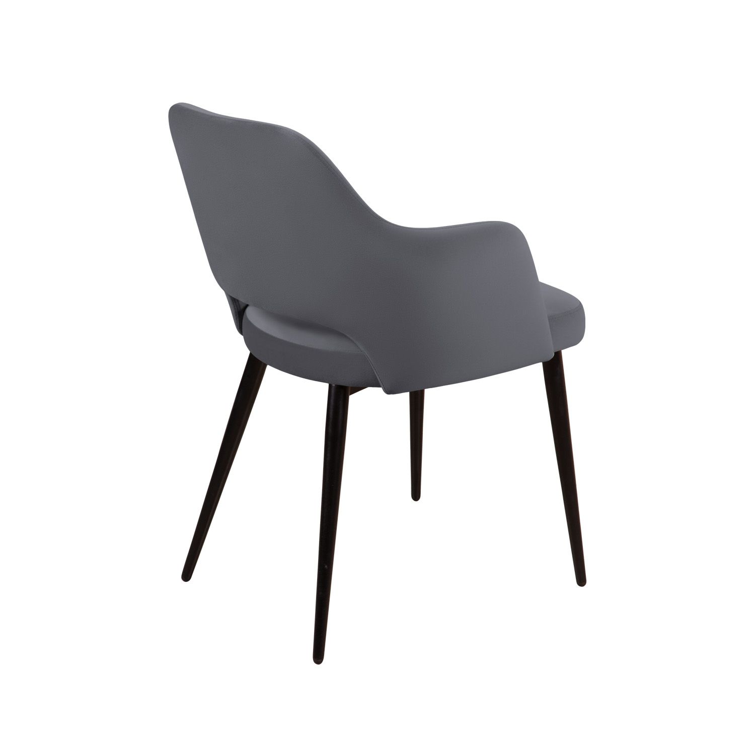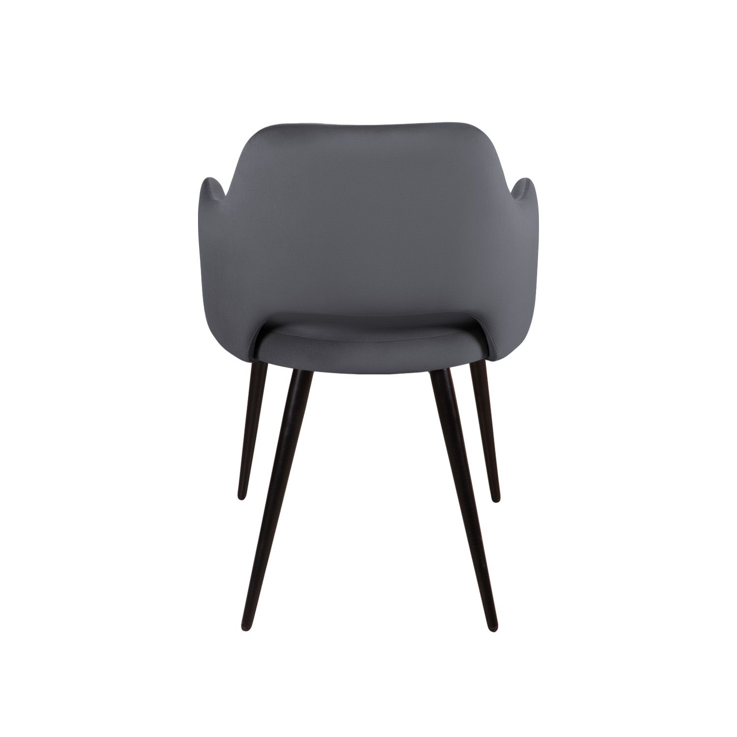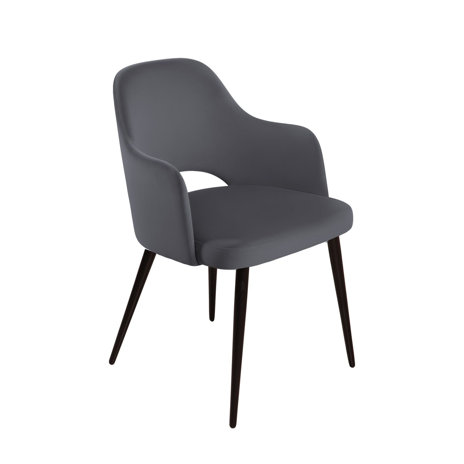 Изюминка стула William – металлические ножки черного матового цвета, излишне скошенные назад, как часть дизайнерской задумки. На ножках предусмотрены специальные пластиковые накладки, которые придают стулу дополнительную устойчивость и защищают пол от царапин.