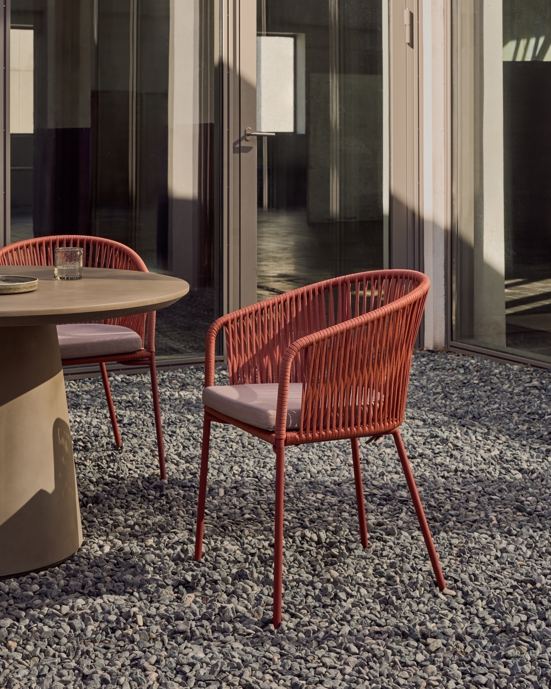Стул Yanet от фабрики La Forma (ex Julia Grup) – непринужденный и современный вид под любое пространство. Стул Yanet – это ручная плетеная структура, которая обнимает мягкое сиденье. Такая гармония создает особую энергетику, побуждает погрузиться в состояние отдыха. И как же хорошо, что стул можно выставлять на улицу. Ведь свежий воздух и теплое солнце – лучшие попутчики для снятия стресса. Стул имеет металлический оцинкованный каркас, который покрыт черной порошковой краской. Его структура трубчатая, где ширина подлокотников составляет 3 см. Спинка создана из полипропиленового шнура со специальной защитой от ультрафиолета и влаги. Особая ценность в том, что плетение сделано вручную. В зависимости от выбранной модели, цвет спинки можно выбрать черный, темно-зеленый, серый, терракотовый. Стул Yanet поставляется с подушкой с водонепроницаемым съемным чехлом. Ее высота – 5 см. Общая максимальная нагрузка – 130 кг. Размеры: ширина – 56 см, высота – 79 см, глубина – 50 см, глубина сиденья – 42 см. Вес изделия – 4,5 кг. Сборка не требуется. В коллекцию Yanet также входят высокие табуреты в аналогичном дизайне.