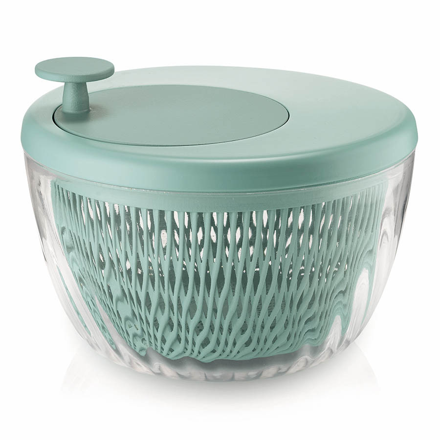 Сушилка Twist&Dry диаметром 26 см поможет быстро удалить воду с листьев салата, шпината и зелени. Изделие состоит из внешнего контейнера с нескользящим основанием, который также можно использовать в качестве миски для сервировки и хранения овощей. Внутри него устанавливается корзина. Она вращается при помощи ручки, расположенной на крышке контейнера. За счет наличия ножек корзина также подойдет для размораживания продуктов. Сушилка легко разбирается на составные части и пригодна для мытья в посудомоечной машине. В набор входит крышка для контейнера, которая будет незаменима при хранении продуктов в холодильнике.