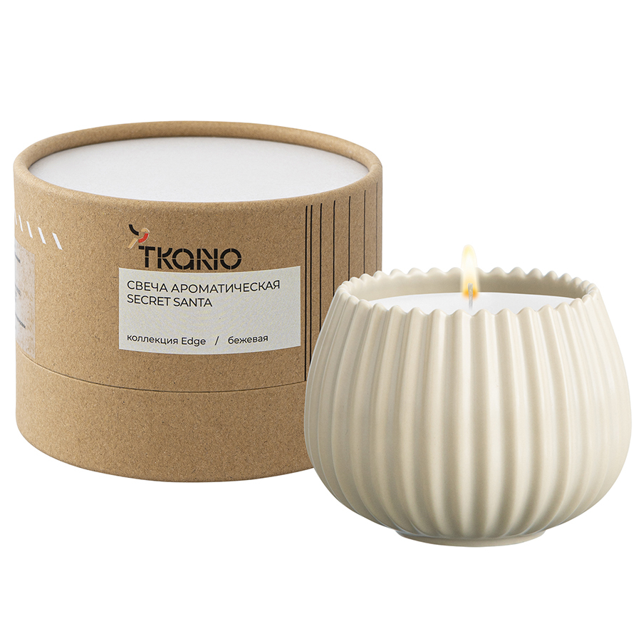 Свеча ароматическая Secret Santa бежевого цвета из коллекции Edge с дизайном, вдохновленным русскими традициями, отлично подойдет для домашнего декора и создания в интерьере уютной, расслабляющей атмосферы. Фактурные грани и округлая поверхность фарфорового стакана отсылают нас к образу купола – символу духовного подъема и стремления к совершенству. Экологичные материалы, такие как соевый, кокосовый воск и фитиль из натурального хлопка делают свечу безопасной для здоровья и окружающей среды. При горении она не выделяет вредных соединений и не коптит. Однако, во избежание перегрева стакана, рекомендуем не зажигать ее более, чем на 4 часа.