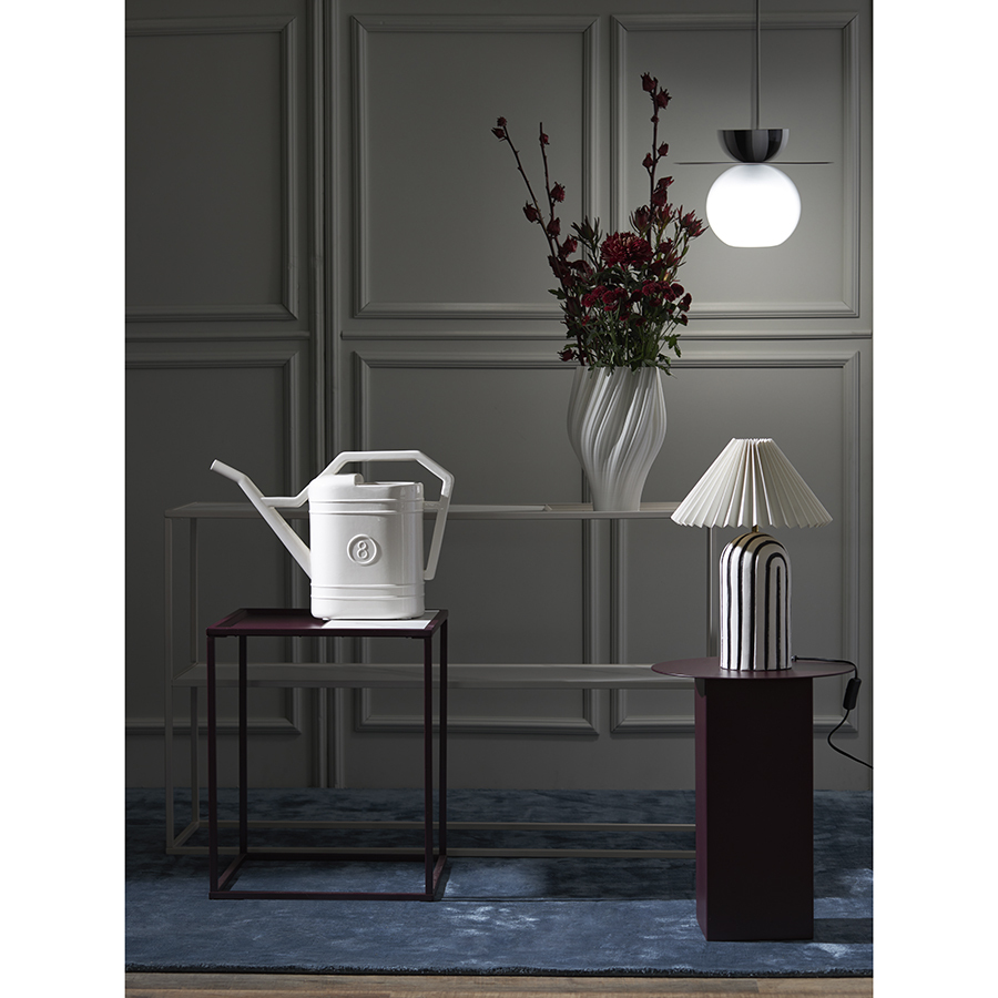 - Красивое сочетание абажура-плиссе и полосатого основания позволяет использовать светильник в качестве интересного акцента.