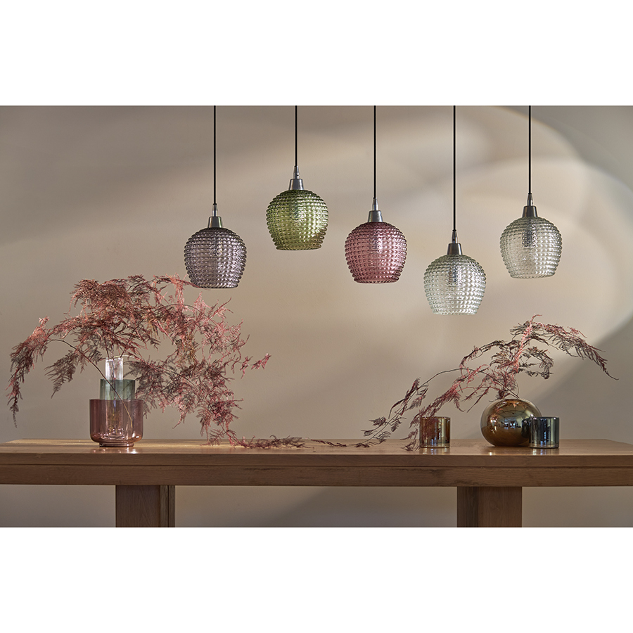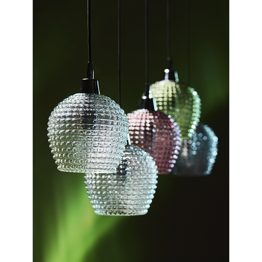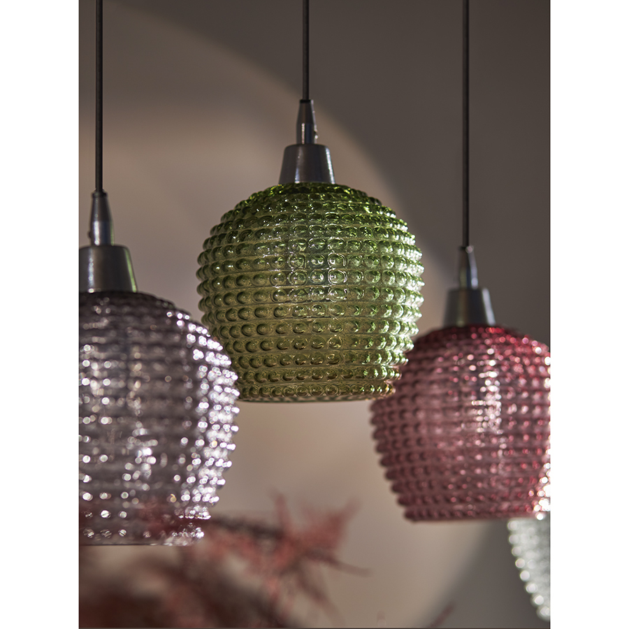 Материалы: стекло, железо. Размеры: 110х18х150 см. Цвет: сливовый/зеленый/серый. Длина провода: 1,1 м, 1,3 м, 1,5 м. Тип цоколя: 5хЕ27. Максимальная мощность ламп: 5х25 Вт. Степень пылевлагозащиты: IP20. Площадь освещения: 8,5 кв.м. Лампы в комплекте: нет.