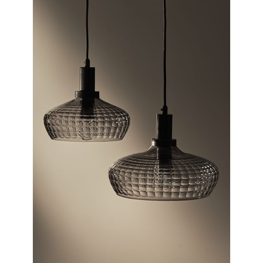 Светильник подвесной Mirage от дизайнерского бренда Bergenson Bjorn великолепно дополнит интерьер в современном стиле, поможет в создании приятного освещения и уютной атмосферы. Модель имеет основание из железа и плафон из стекла. Стенки плафона украшает выпуклый узор, который красиво преломляет свет, обеспечивая интересный визуальный эффект.