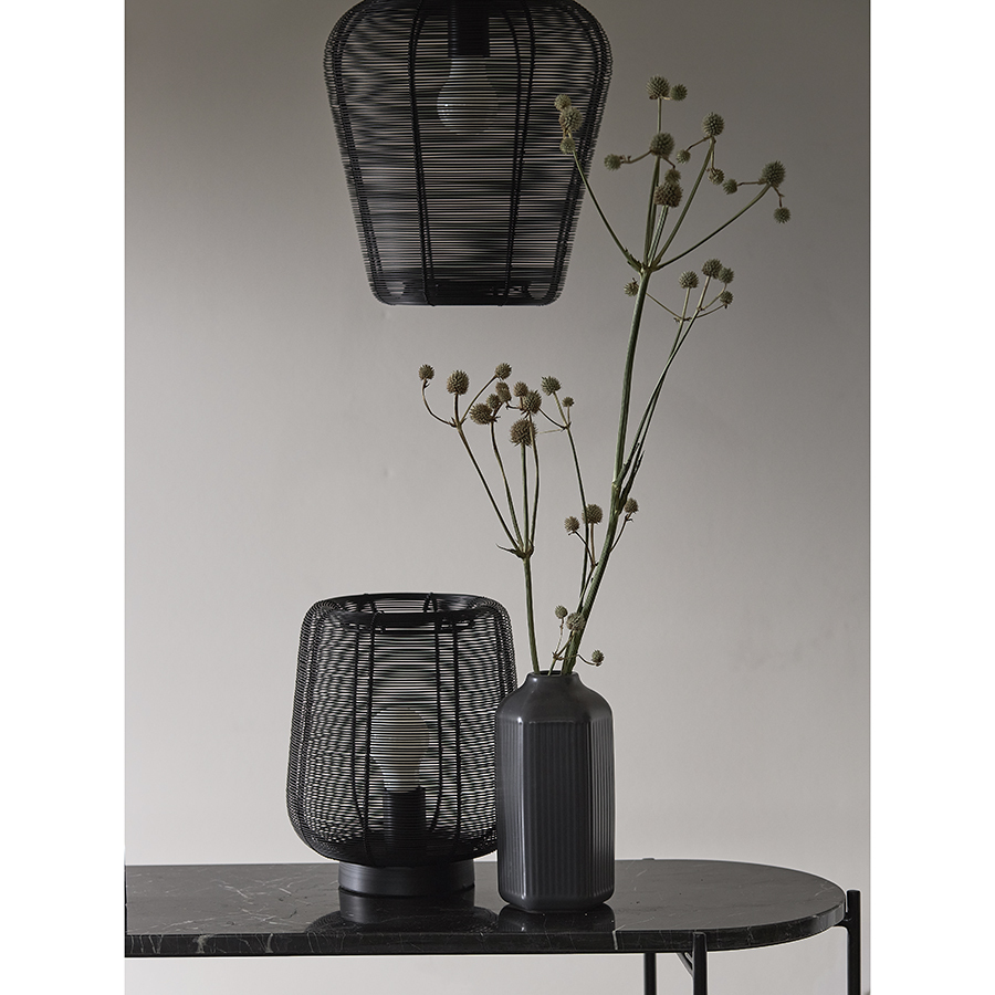 - Светильник с абажуром из железной сетки смотрится необычно и идеально подходит в качестве акцентного элемента.