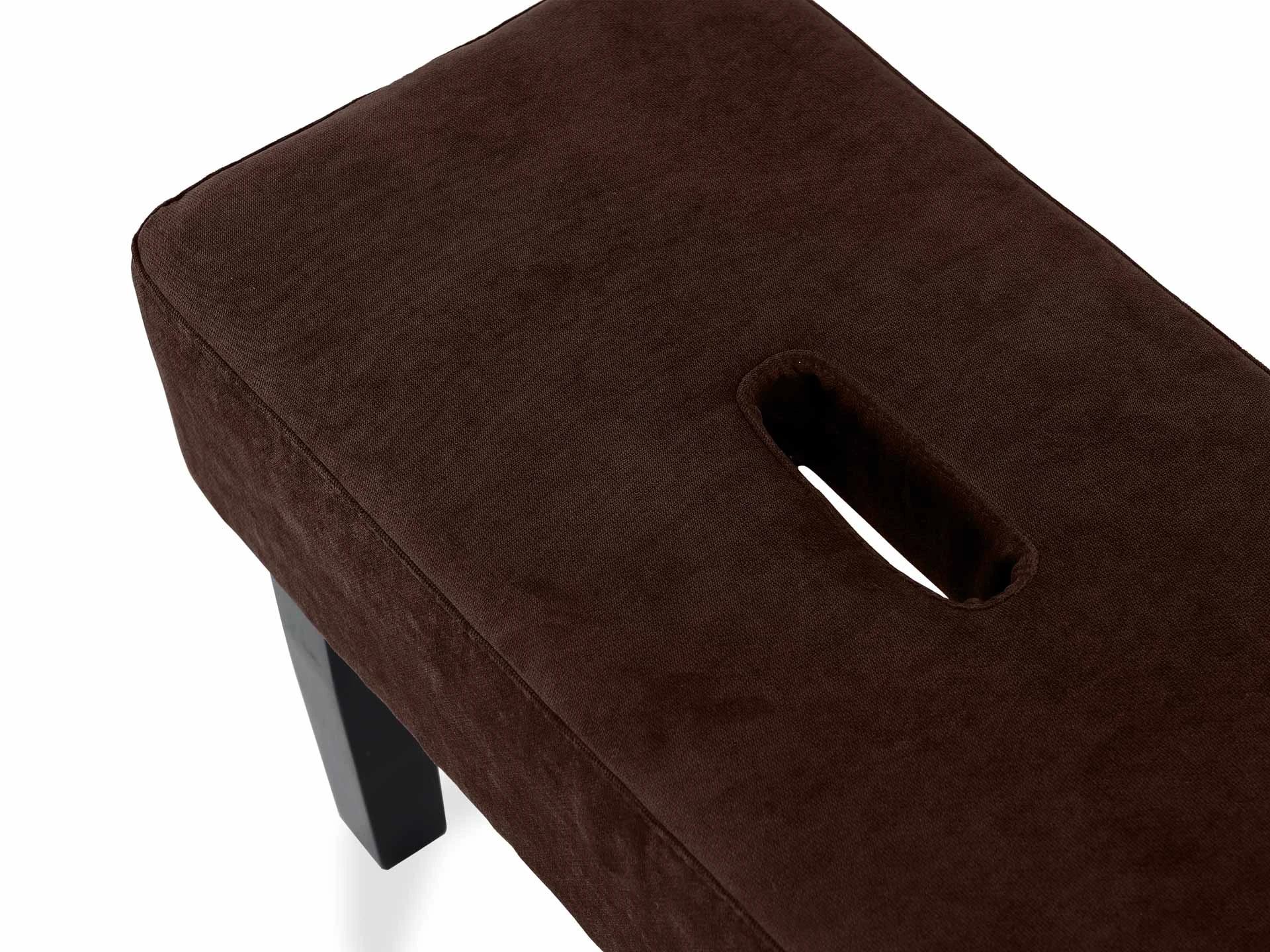 Табурет мягкий. Благодаря отверстию в верхней части табурет легко перемещать. Можно использовать под ноги, которые устают в течение рабочего дня или поставить в коридоре для удобства при обувании.