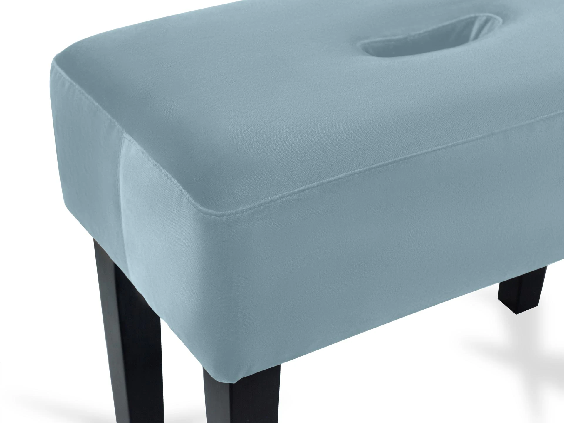 Табурет мягкий. Благодаря отверстию в верхней части табурет легко перемещать. Можно использовать под ноги, которые устают в течение рабочего дня или поставить в коридоре для удобства при обувании.