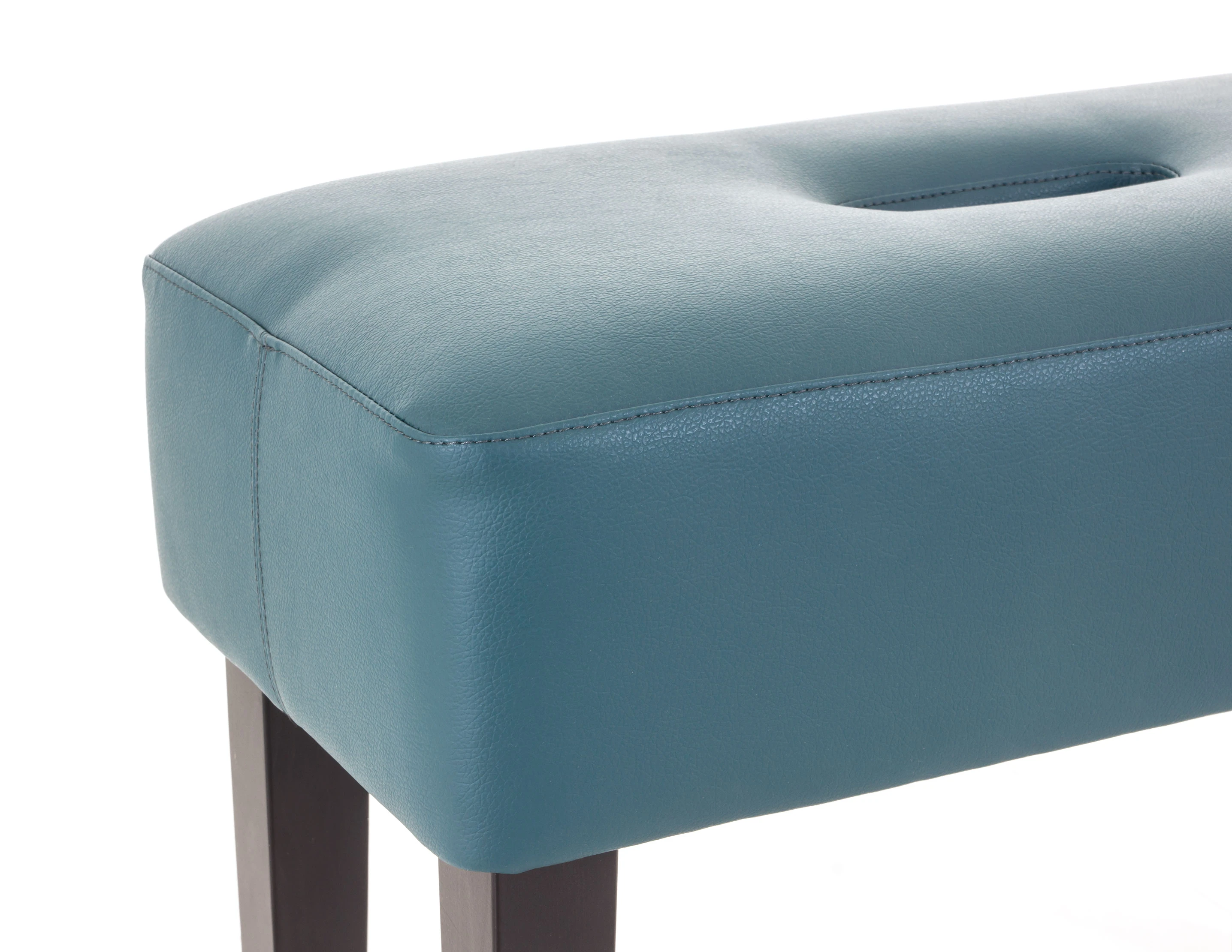 Табурет мягкий. Благодаря отверстию в верхней части табурет легко перемещать. Можно использовать под ноги, которые устают в течение рабочего дня или поставить в коридоре для удобства при обувании.