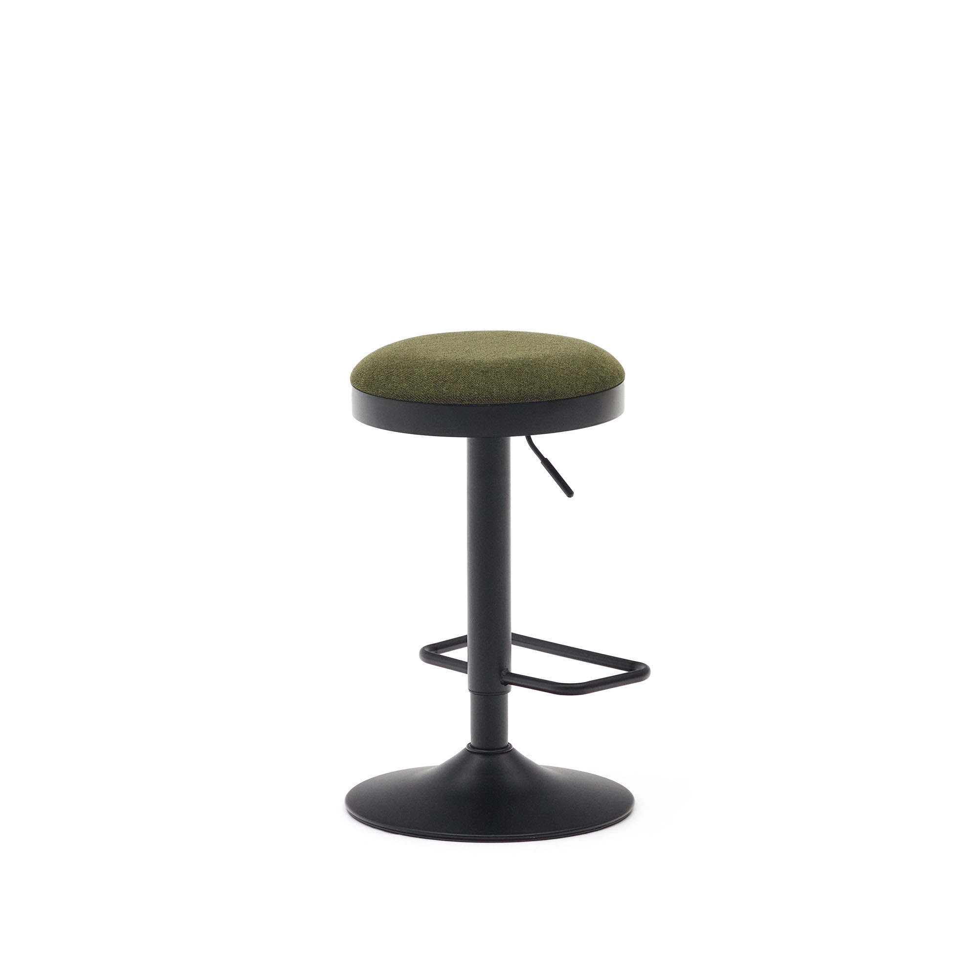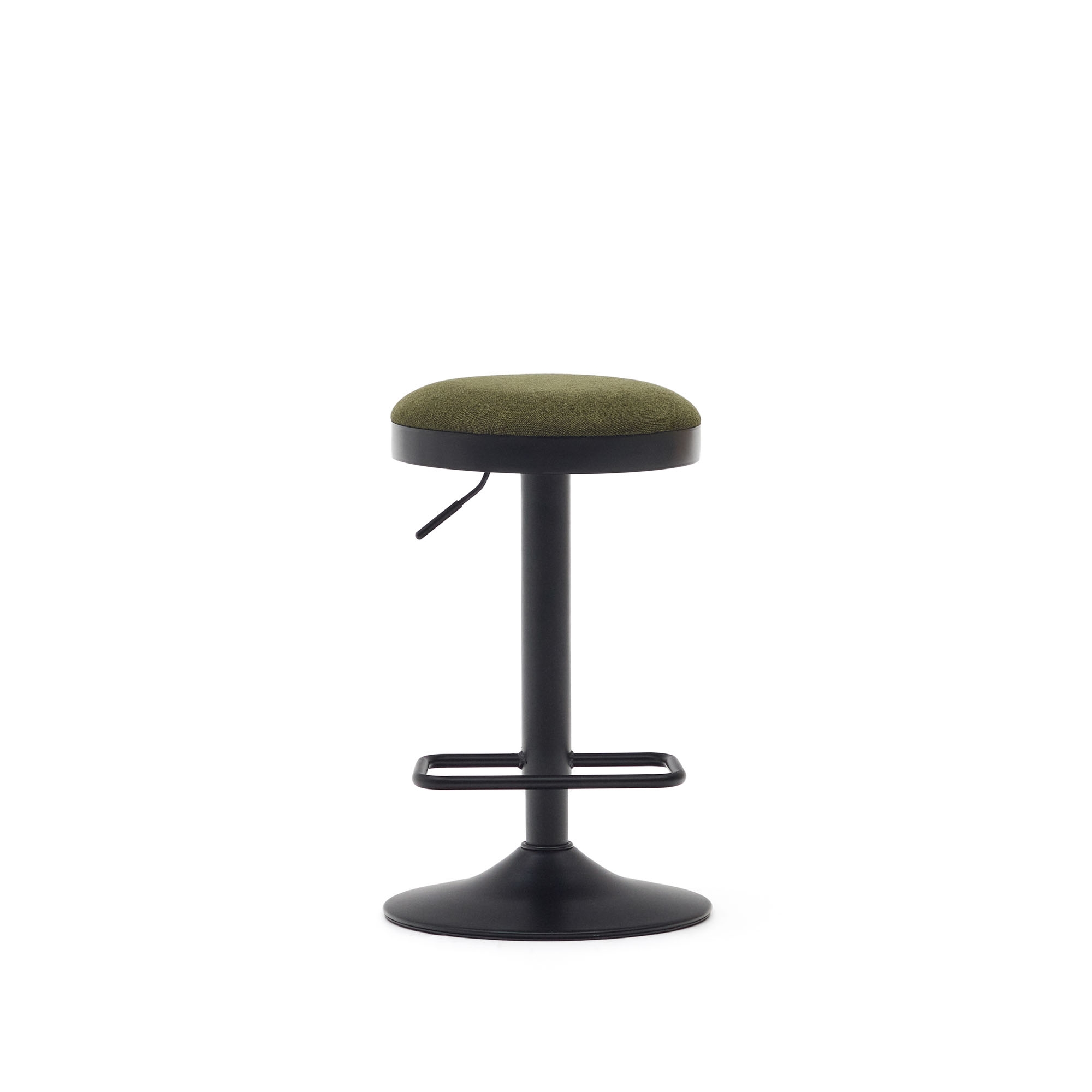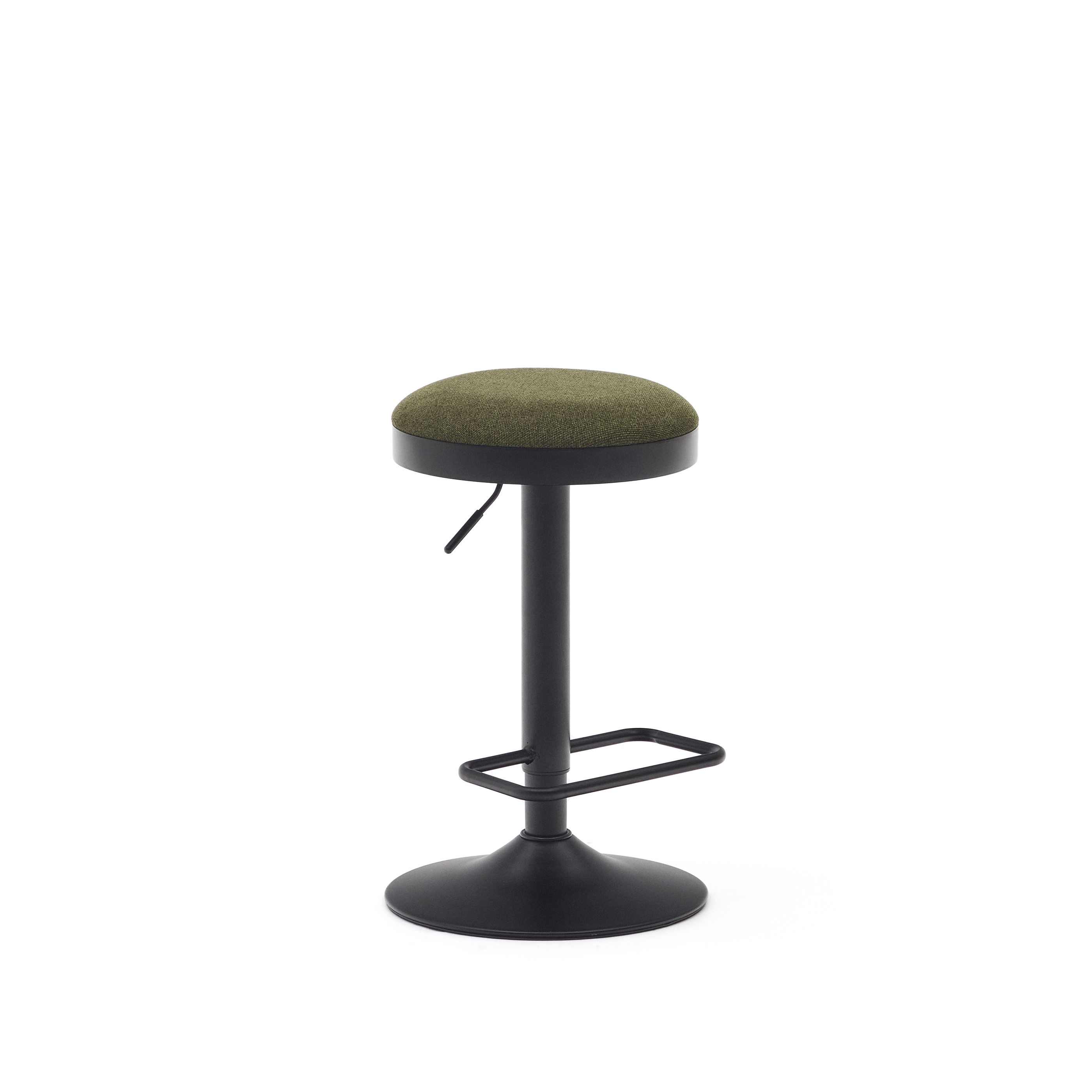 Ручка для регулировки высоты расположена под сиденьем справа. Табурет также наделен опцией вращения вокруг своей оси.