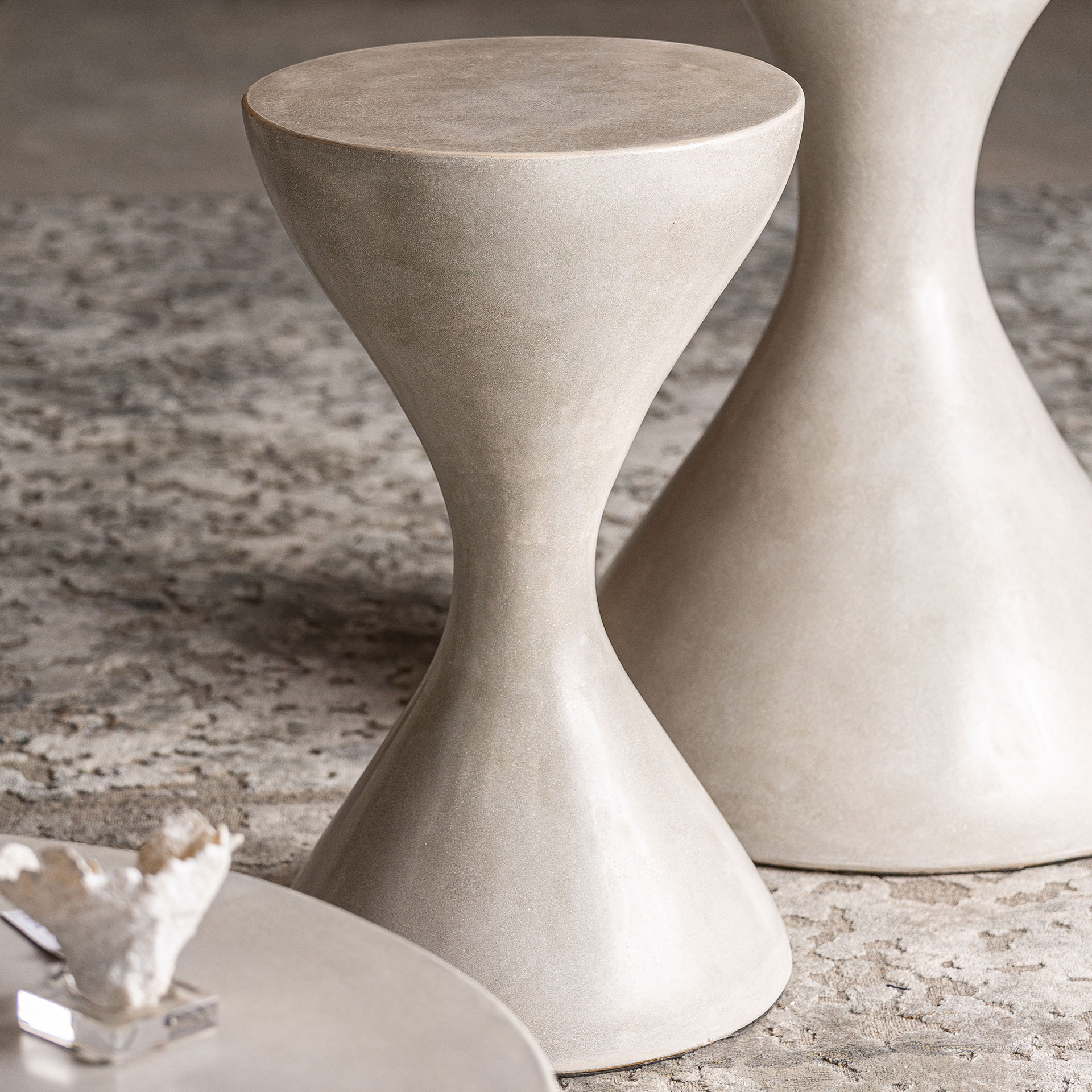 Табуретки, серый цвет, современный стиль. Изготовлен из бетона.