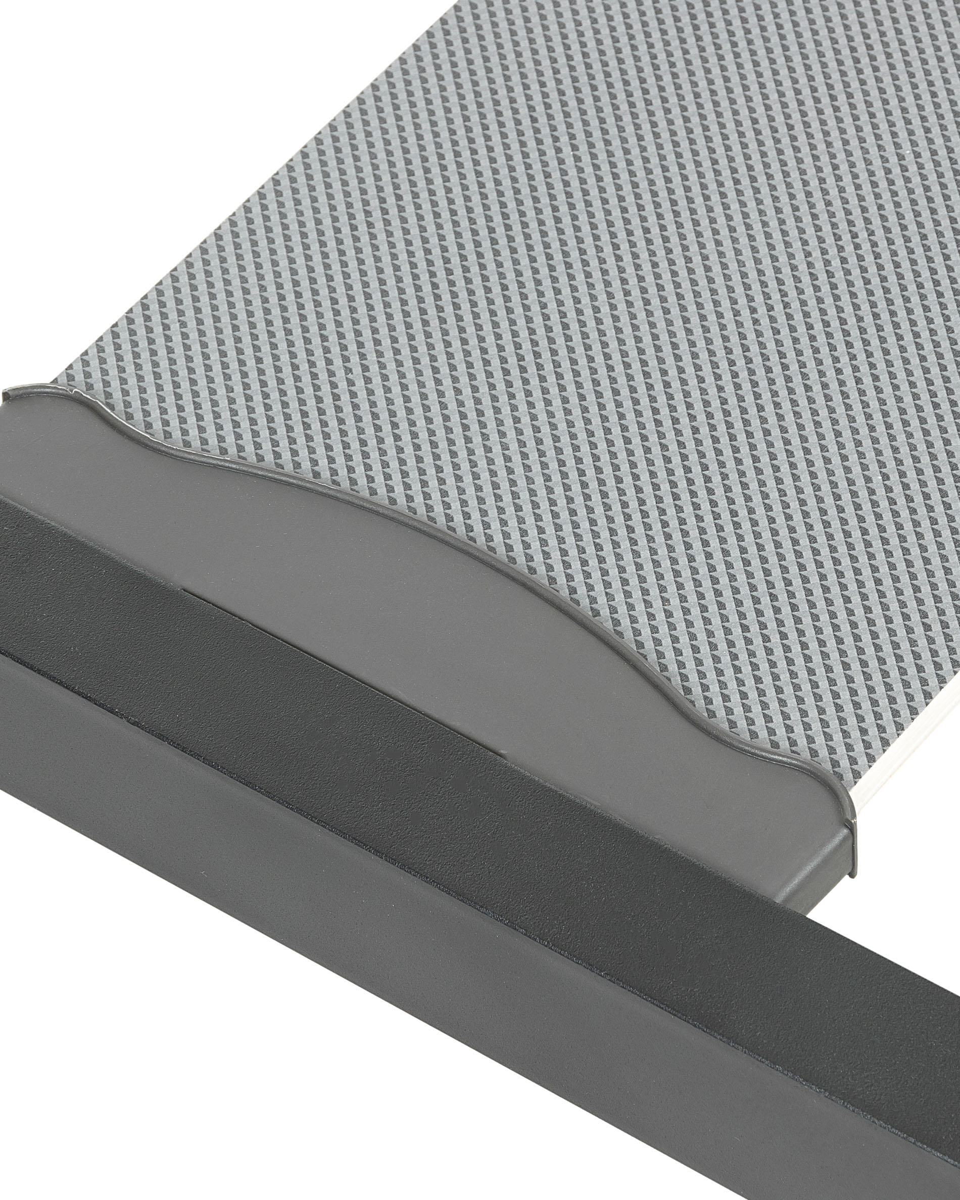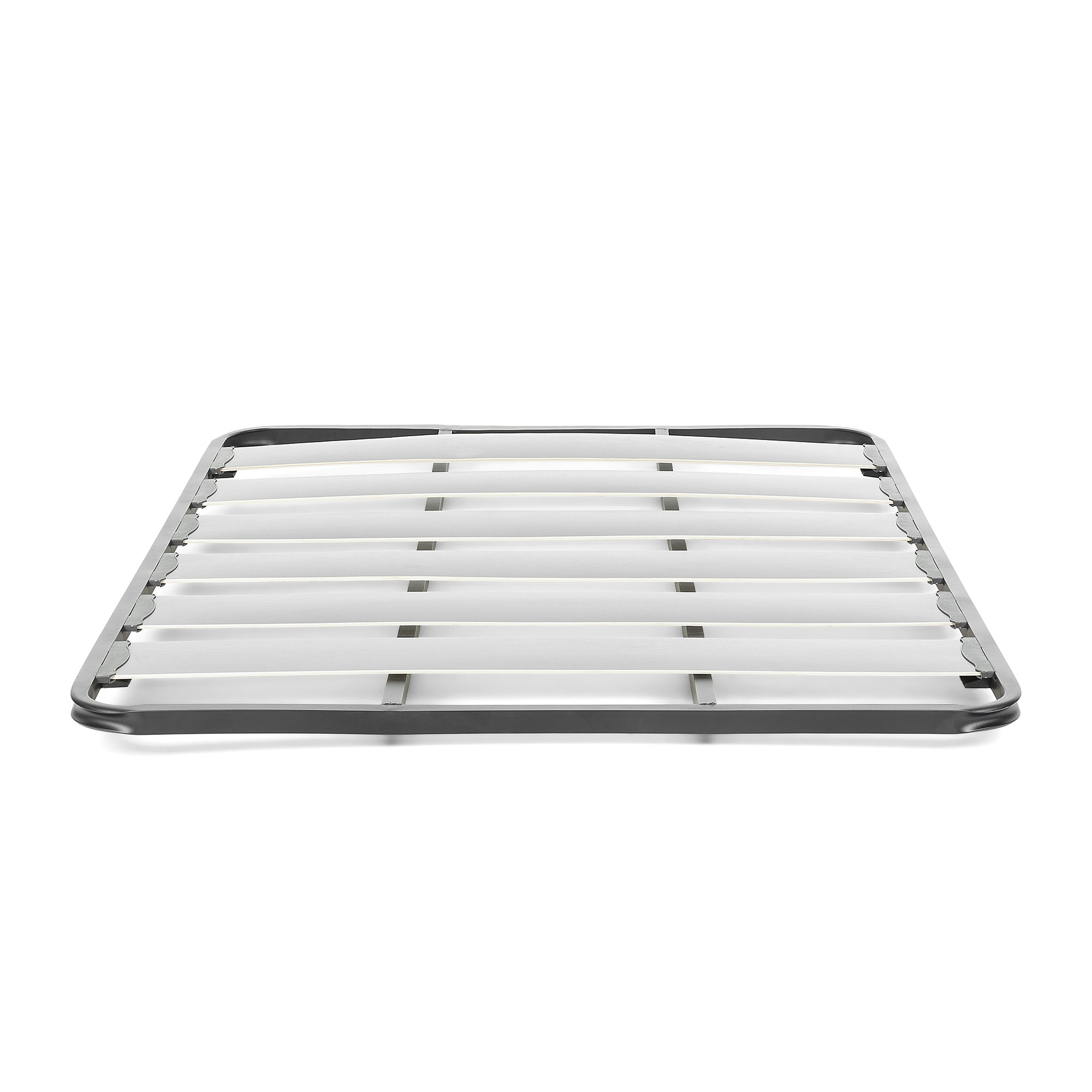 Основание кровати с металлической структурой графитового цвета и деревянными планками с эффектом углеродного волокна. Противошумные полиэтиленовые стыки. Включает соединительные пластины, совместимые с ножками X или S (не включены). Для матраса 135x190 см. Используйте 6 ног.