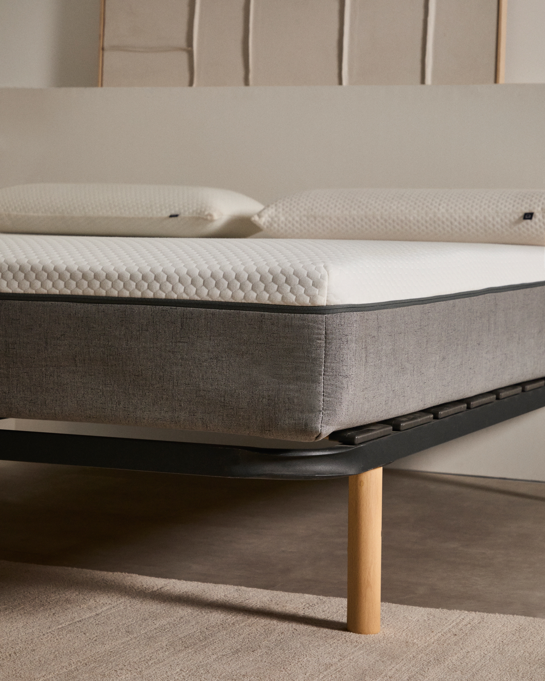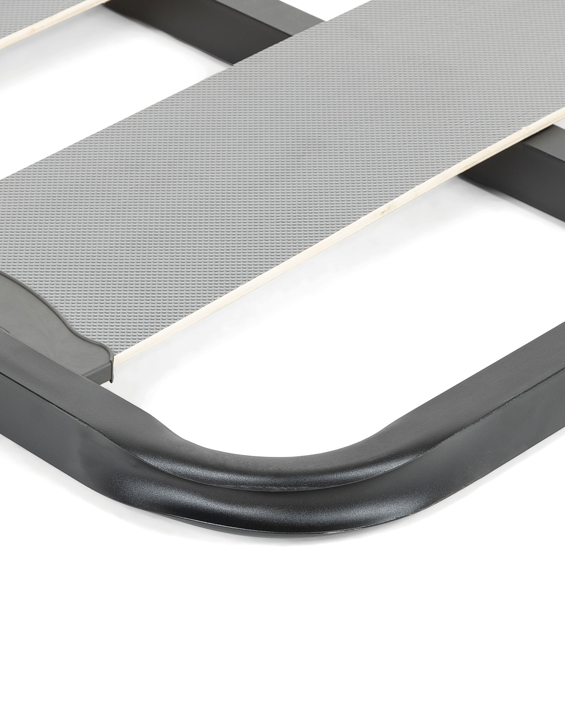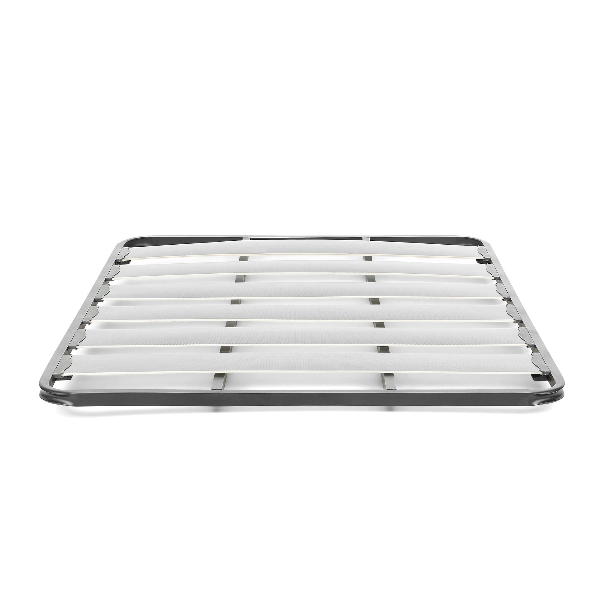 Основание кровати с металлической структурой графитового цвета и деревянными планками с эффектом углеродного волокна. Противошумные полиэтиленовые стыки. Включает соединительные пластины, совместимые с ножками X или S (не включены). Для матраца 140х190 см. Используйте 6 ног.