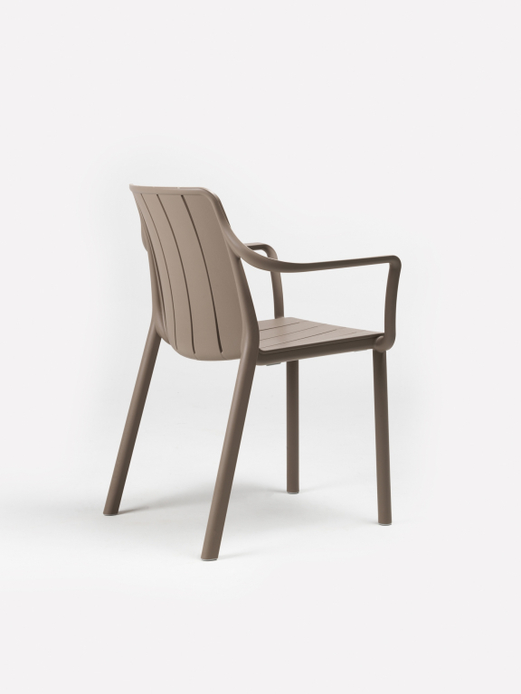 Планки, плавные закругленные линии и экологичность - вот отличительные черты нового элегантного кресла Tiberina. Модель может быть выполнена из регенерированного пластика (цвет терра) или из пластика, пригодного для вторичной переработки.