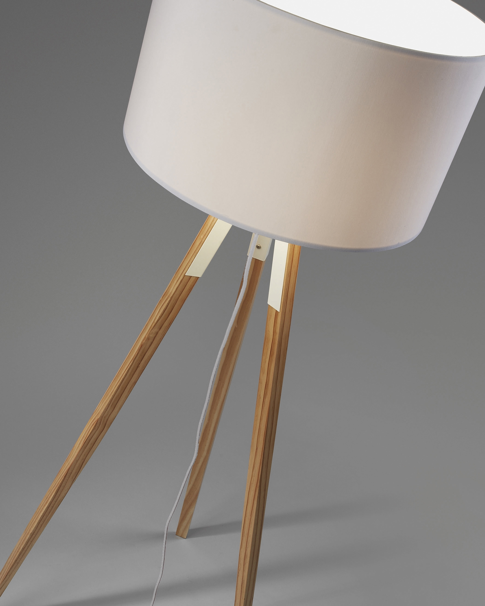 Торшер Uzagi от фабрики La Forma (ex Julia Grup) – тренога из массива и тканевый абажур.