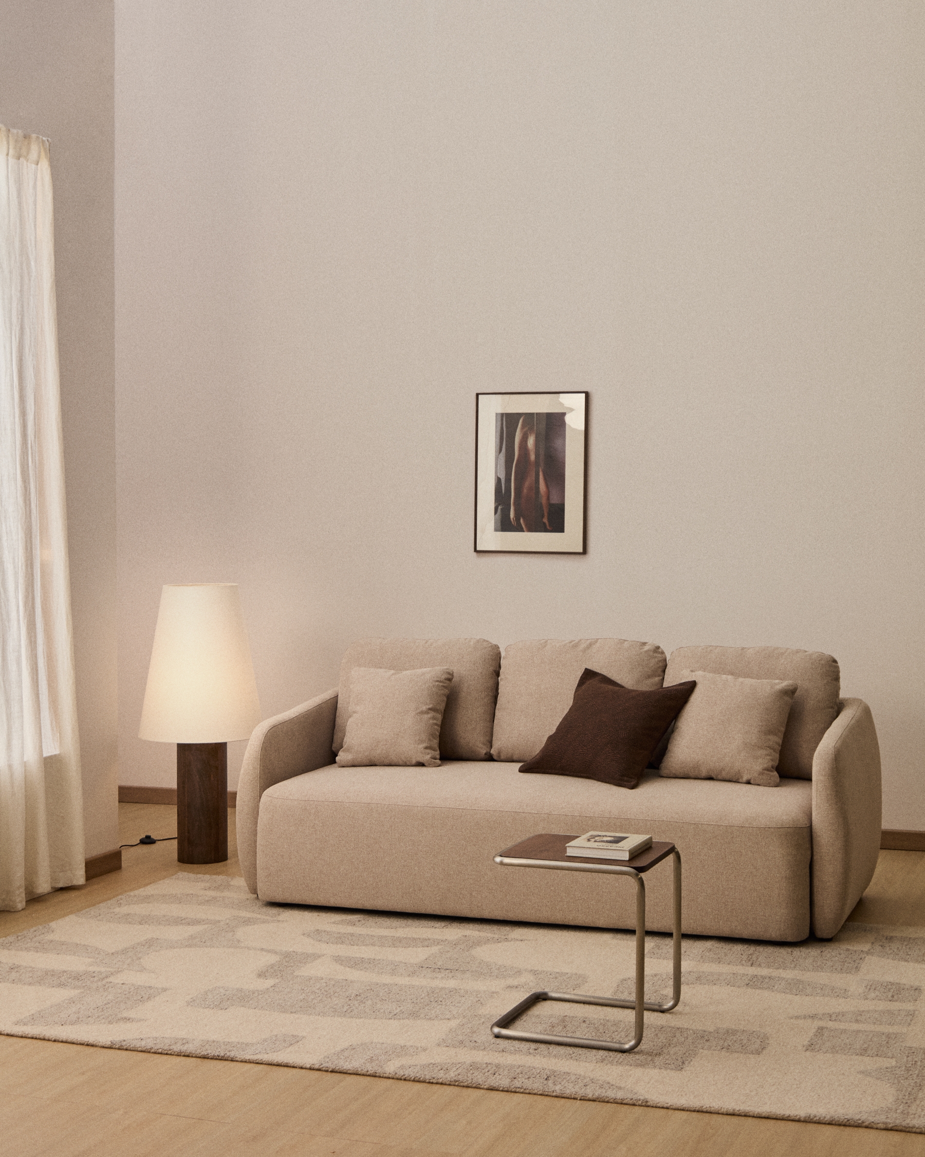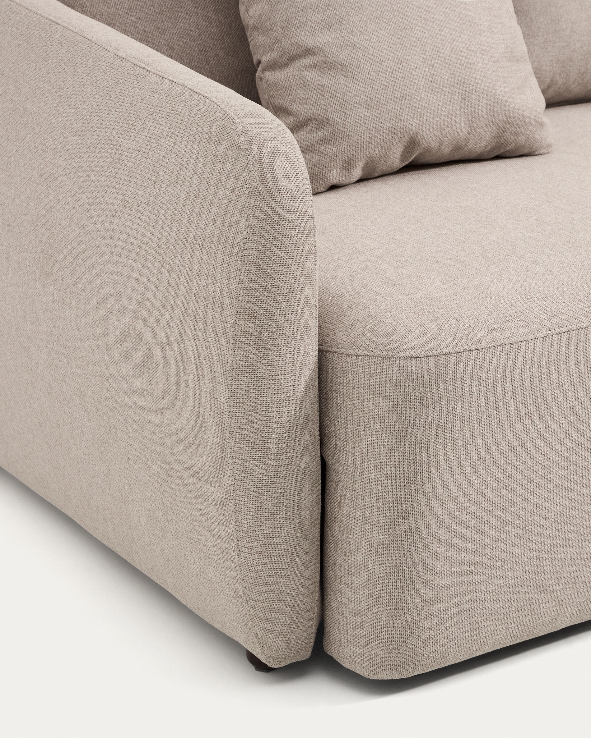 Диван-кровать Laira отличается обивкой из высококачественного, крупнозернистого шенилла, очень мягкого на ощупь и износостойкого. Система Y-open позволяет быстро и легко превратить диван в удобную кровать размером 150 x 190 см благодаря синхронизированному механизму открывания. В разложенном виде его также можно использовать как сплошной шезлонг. Пенополиуретан средней жесткости (28 кг/м³) обеспечивает сиденье средней упругости, предлагая баланс комфорта и поддержки.