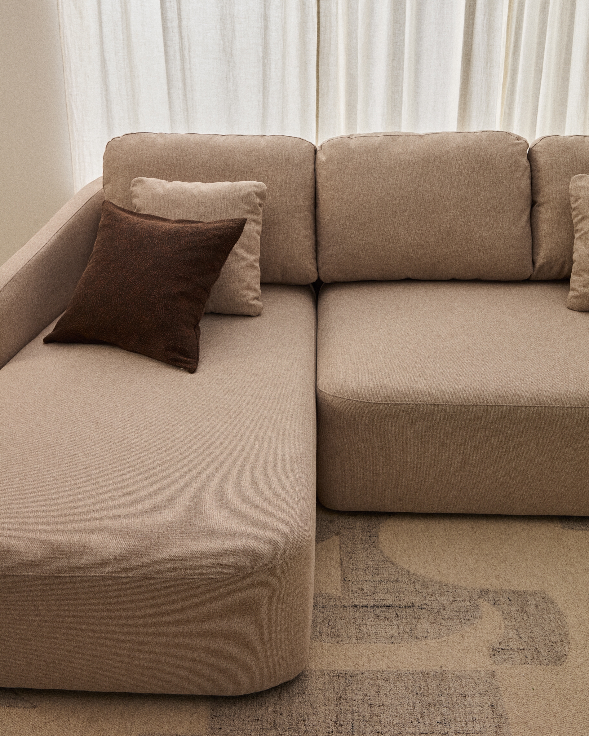 Диван-кровать Laira отличается обивкой из высококачественного, крупнозернистого шенилла, очень мягкого на ощупь и износостойкого. Система Y-open позволяет быстро и легко превратить диван в удобную кровать размером 150 x 230 см в самой широкой точке благодаря синхронизированному механизму открывания. В разложенном виде его также можно использовать как сплошной шезлонг. Среднеплотный пенополиуретан 28 кг/м³ обеспечивает среднюю жесткость сиденья, предлагая баланс комфорта и поддержки.