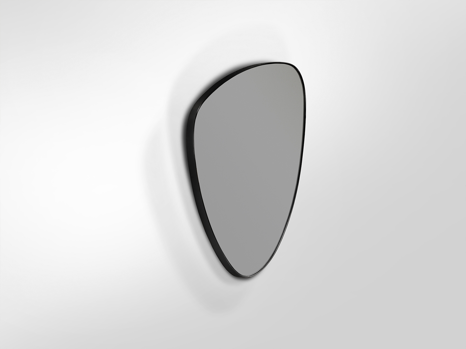 Треугольное зеркало в раме из МДФ, окрашенное в черный матовый цвет. Готов повесить в горизонтальном или вертикальном положении.