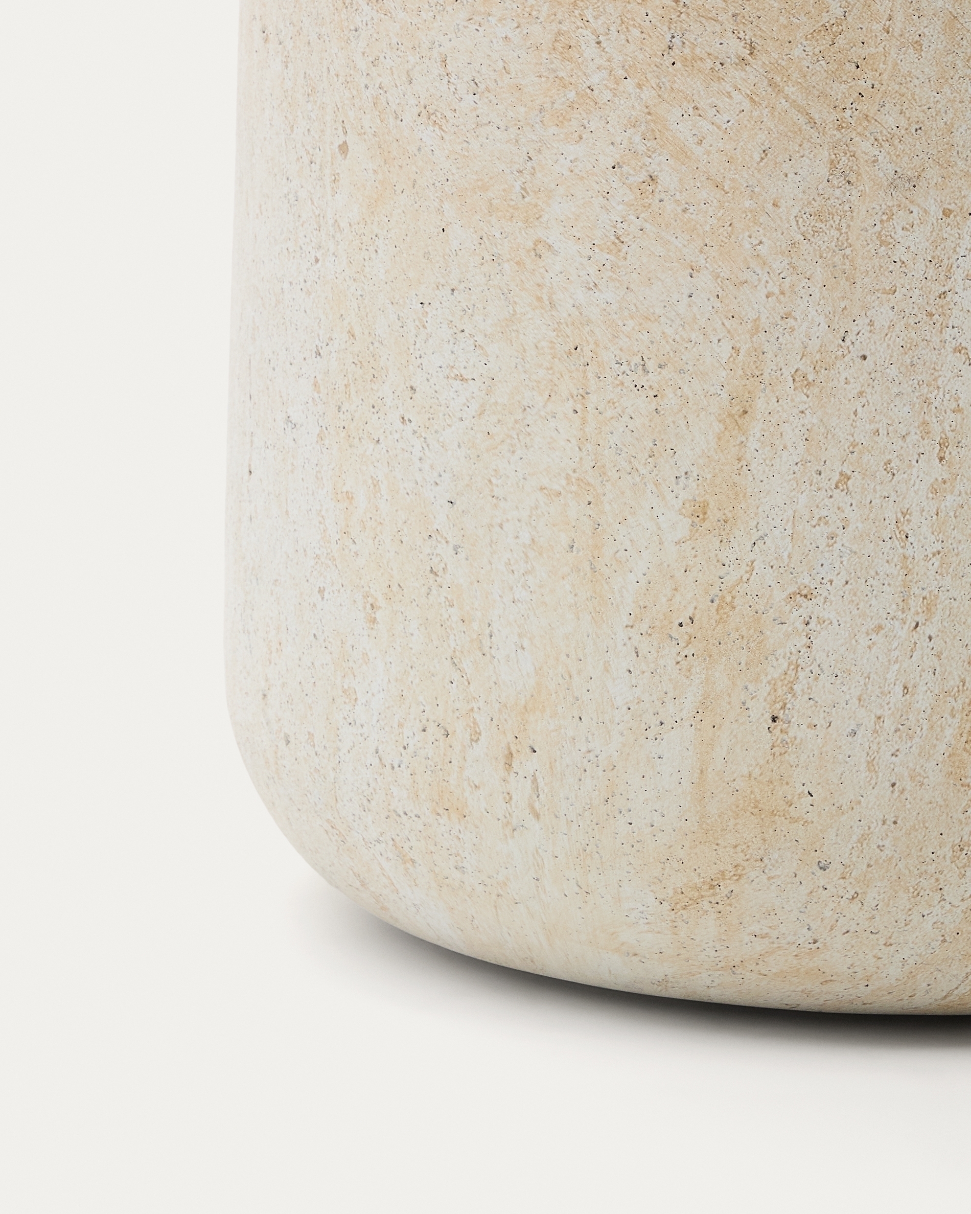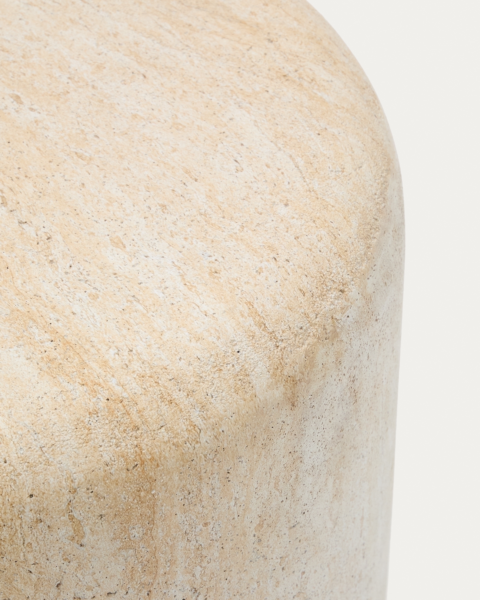 Drasi изготовлен из GFRC, композитного материала на основе стекловолокна, который обеспечивает высокую прочность при небольшом весе. Этот предмет выделяется своей безупречной отделкой, имитирующей травертин. Его строгие линии и уникальные текстуры делают каждый стол эксклюзивным предметом с собственными тонами и текстурами.