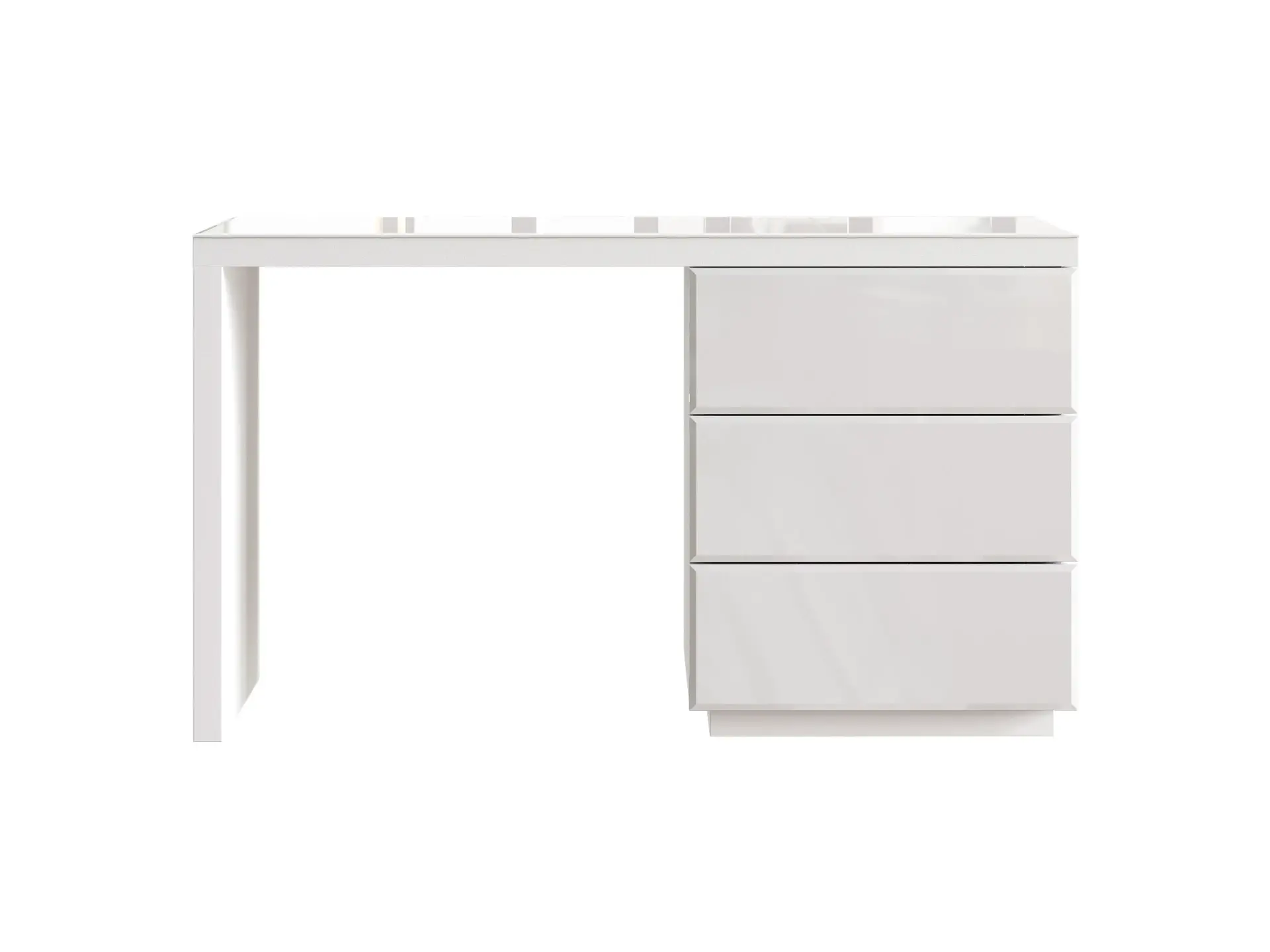 Туалетный столик с тремя выдвижными ящиками. Столешница и фасадные стенки ящиков декорированы стеклом. Стол может быть собран с правым или левым расположением тумбы с ящиками. Ящики открываются по принципу «нажал — открыл».
