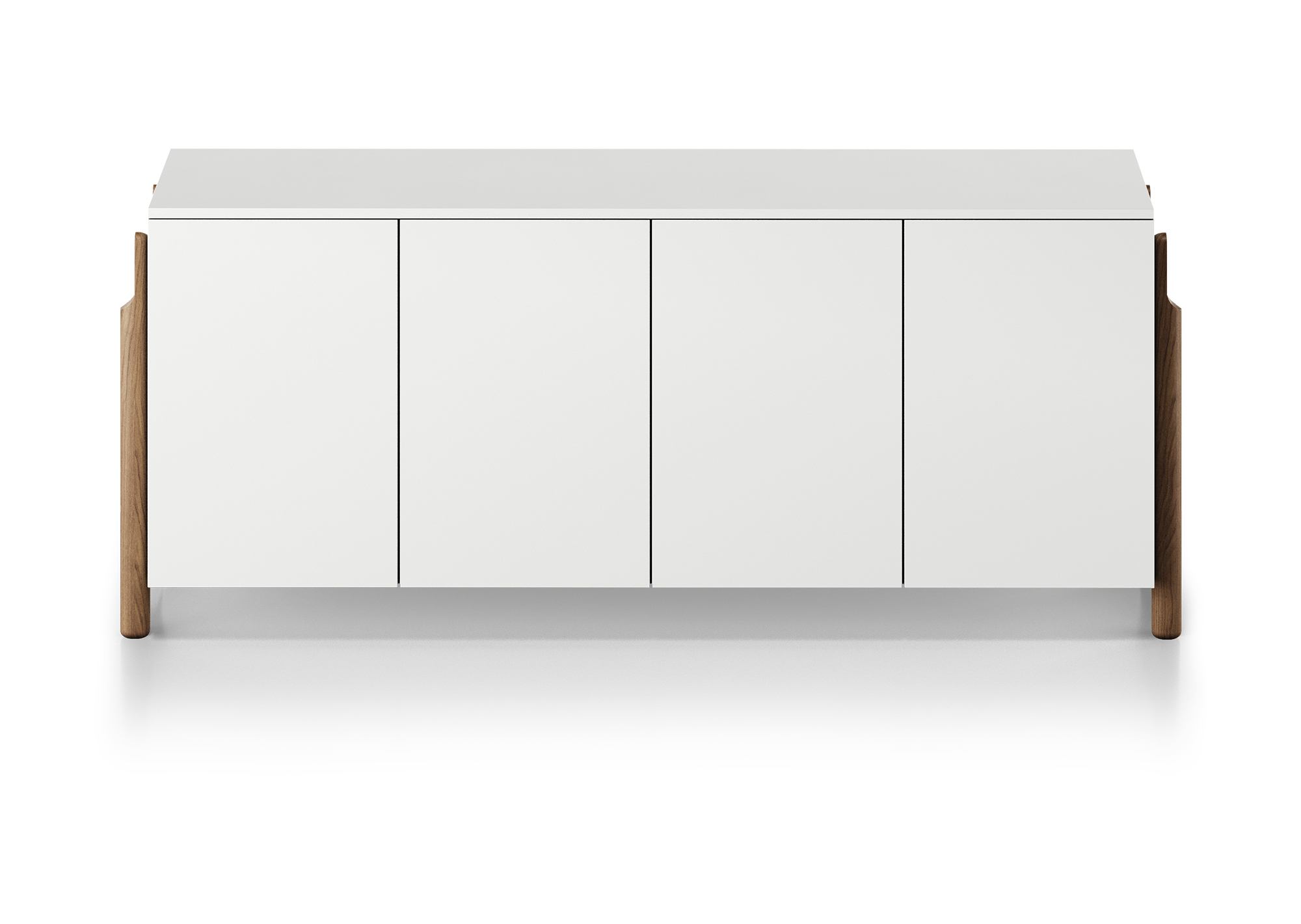 Тумба Basic 4 двери ширина 170 см Высота: 70 см Ширина: 170 см Глубина: 49 см Вес: 80 кг Материал: МДФ Каркас ящиков: ЛДСП Покрытие корпуса: эмаль RAL 9003 Ножки: дуб