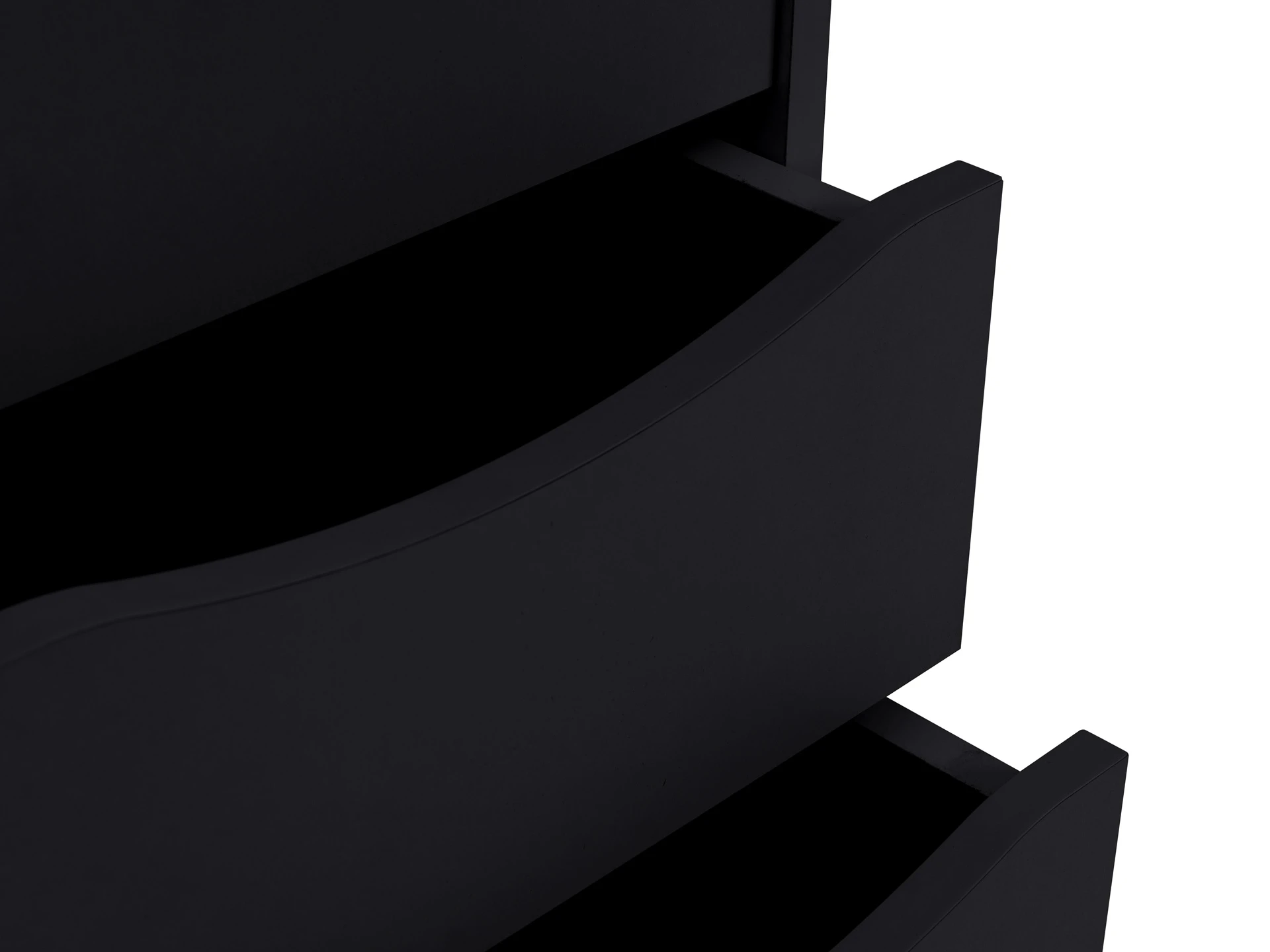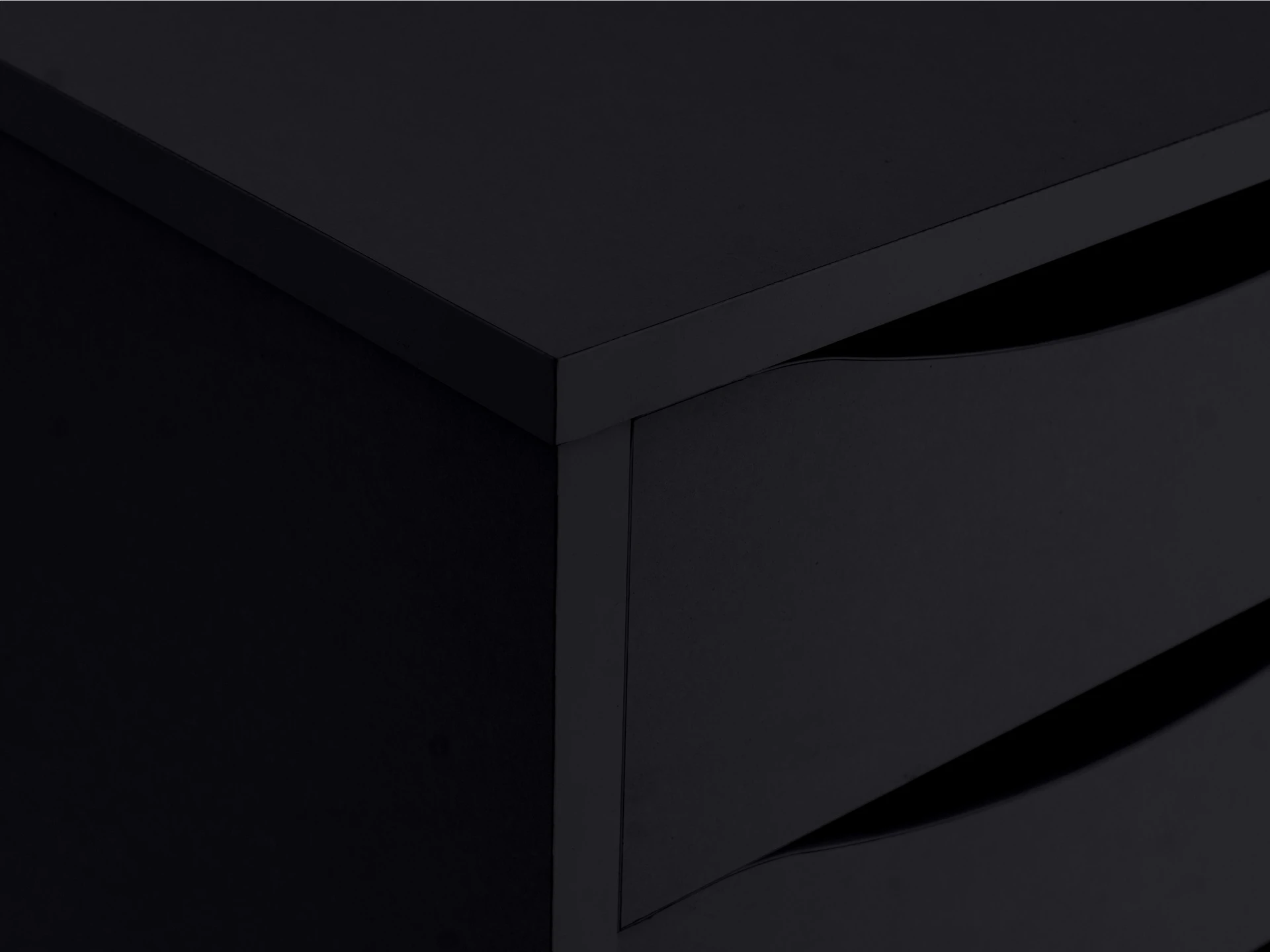 Фасады без ручек, с фигурной выемкой для открывания за кромку.