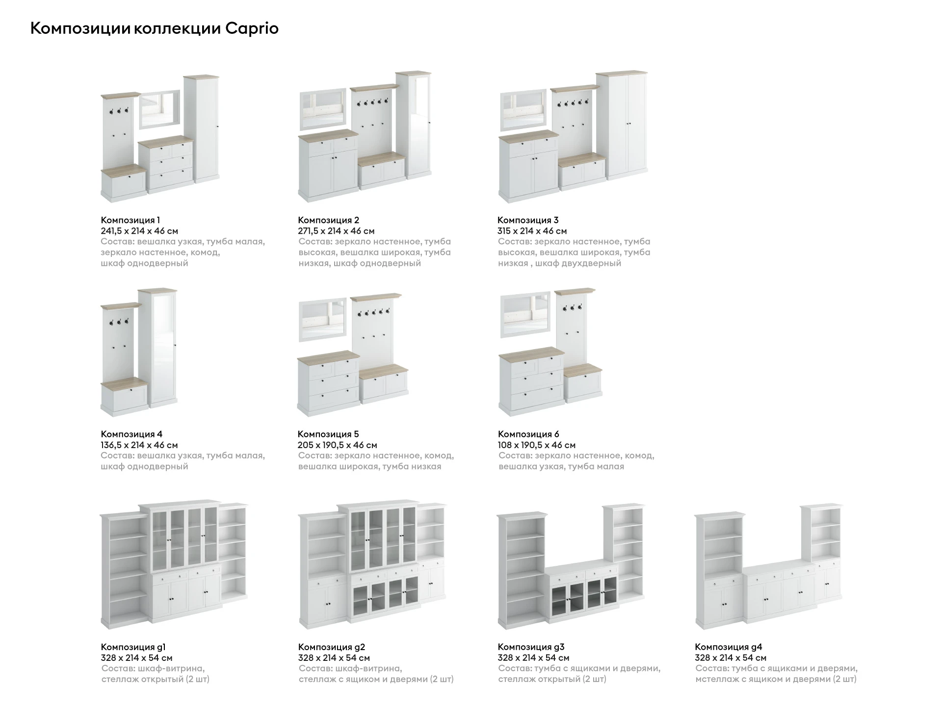 Комбинированные стеллажи с открытыми полками и закрытыми ящиками подходят для документов, техники, косметики, предметов творчества. Открытые стеллажи, удлиненные тумбы можно использовать для зонирования. В шкафу-витрине со стеклянными дверями гармонично будет смотреться как коллекция посуды ручного производства, так и домашняя библиотека. Модели в белом цвете наполнят пространство свежестью, воздушностью, дружелюбной атмосферой. Композиции в сером будут выделяться на светлом фоне, поддержат строгую и сдержанную аранжировку в скандинавской эстетике. Предметы Caprio отличаются продуманным содержанием и сбалансированным внешним видом. Поэтому впишутся как в просторные помещения, так и в компактные интерьеры в стилистике минимализма, сканди, прованса, эклектики.