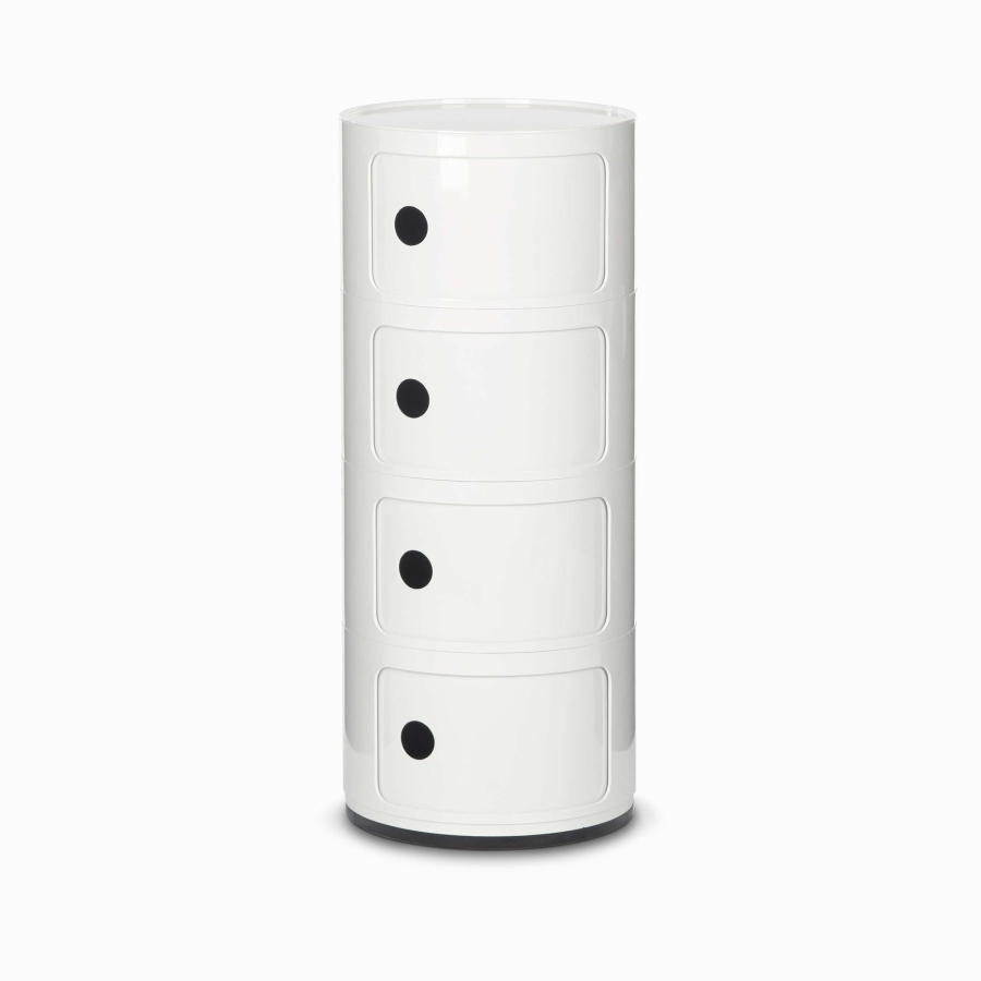 Тумба с 4 отсеками из коллекции Componibili — это функциональный и стильный элемент, который идеально подойдет для хранения различных предметов. Яркие цвета тумбы привнесут в ваше пространство веселое и интересное настроение.