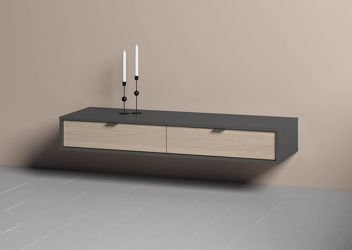 Тумба Fjord 2 ящика подвесная Высота: 18 см Ширина: 122 см Глубина: 41 см Основание: массива бука Корпус: МДФ под эмалью Фасады: шпон дуба