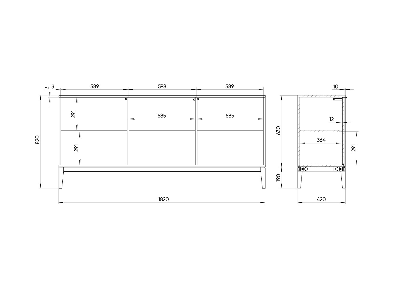 Тумба Fjord 3 двери глубина 42 см Высота: 82 см Ширина: 182 см Глубина: 42 см Основание: массива бука Корпус: МДФ под эмалью Фасады: шпон дуба
