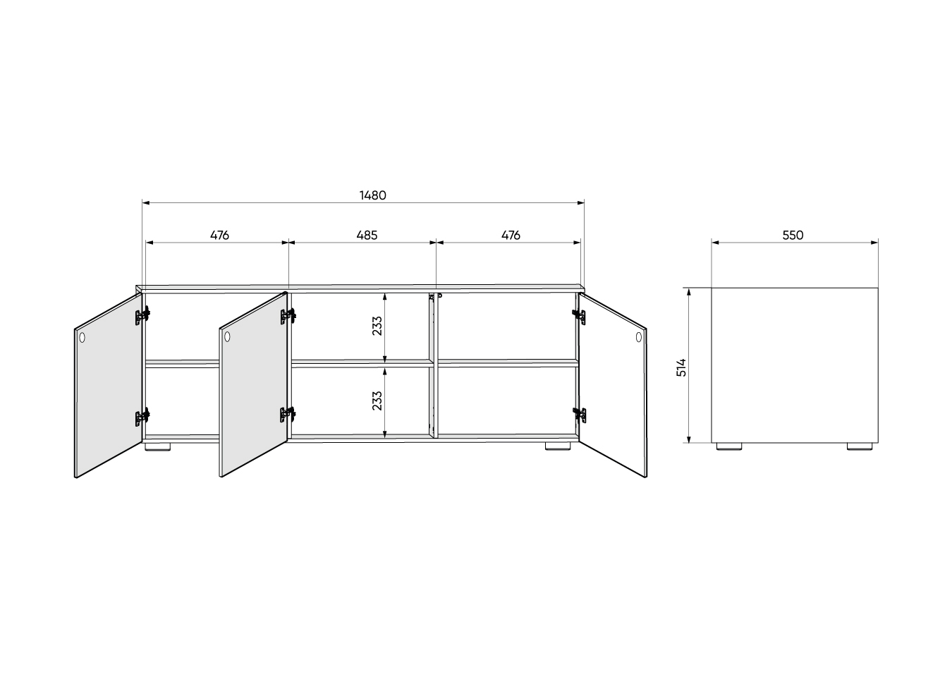 Тумба Hub 3 двери глубина 55 см на низких ножках (белый) Высота: 53,4 см Ширина: 148 см Глубина: 55 см Корпус: ЛДСП Фасады: крашеный МДФ (эмаль) Ножки: бук