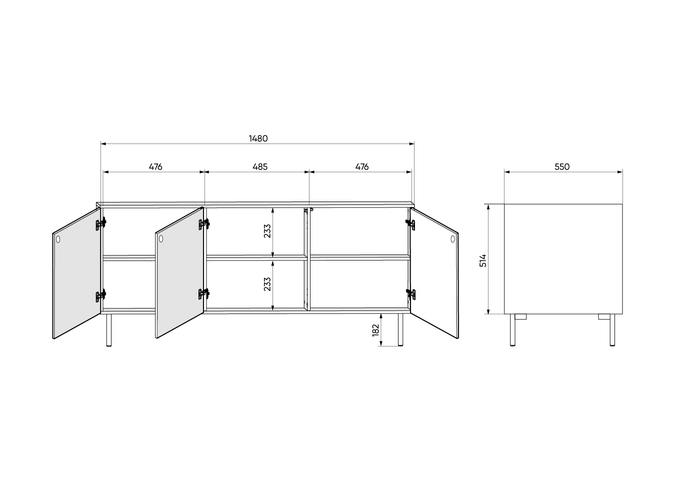 Тумба Hub 3 двери глубина 55 см на высоких ножках (белый)