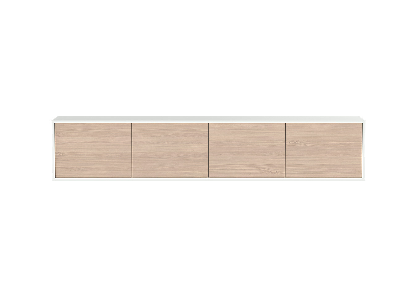 Тумба Hub 4 двери подвесная (белый, натуральный) Высота: 39,8 см Ширина: 206,4 см Глубина: 40,5 см Корпус: ЛДСП Фасады: шпон дуба
