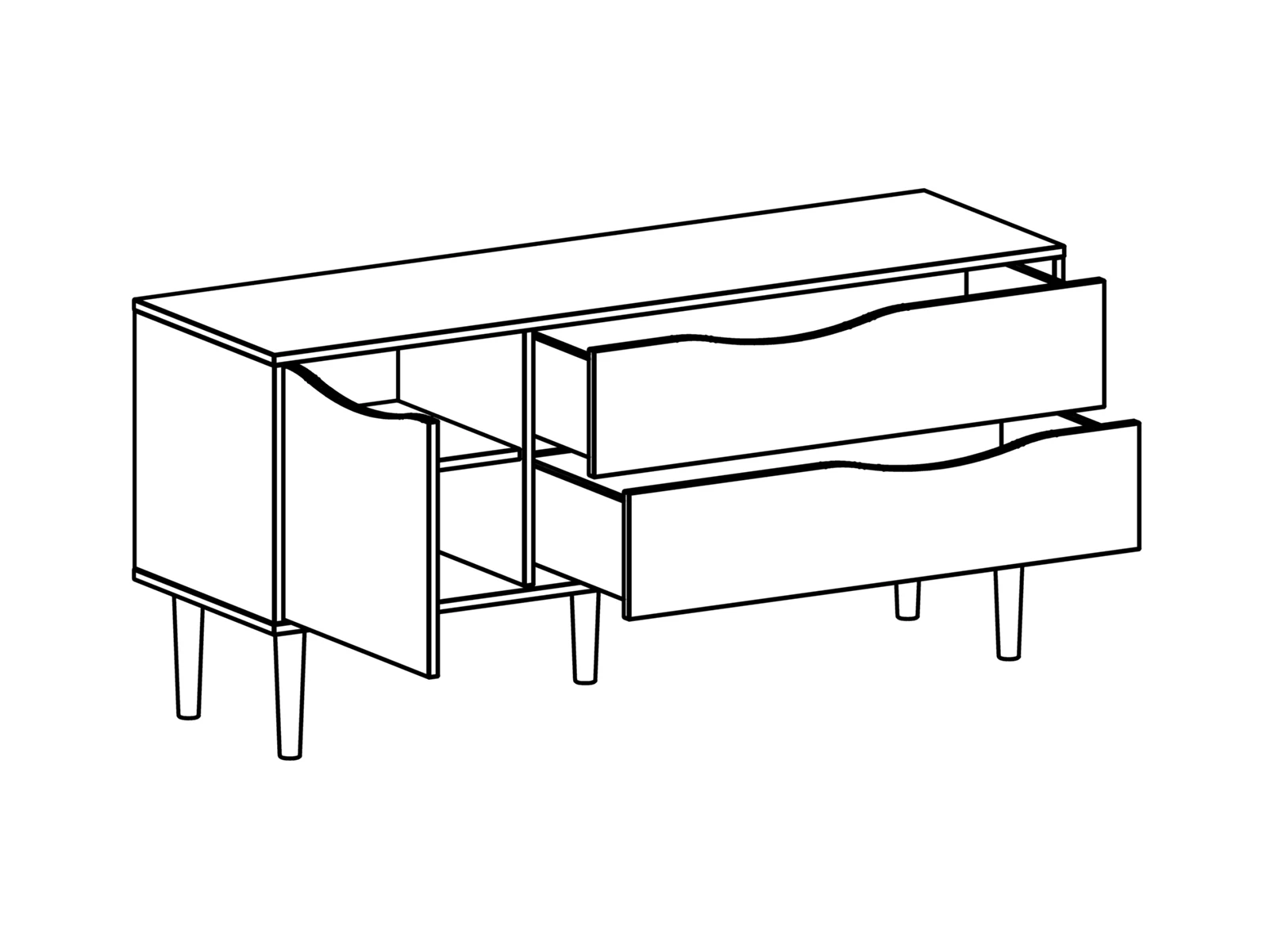 Размеры отлично подходят для небольших помещений. Ножки визуально немного увеличивают пространство. Удобные полки вмещают все самое необходимое: книги, журналы, DVD-диски. Поставьте в сервант рамки с фотографиями дорогих вам людей. Используйте необычные аксессуары, предметы дизайна, возможно, небольшие растения, чтобы немного освежить композицию.