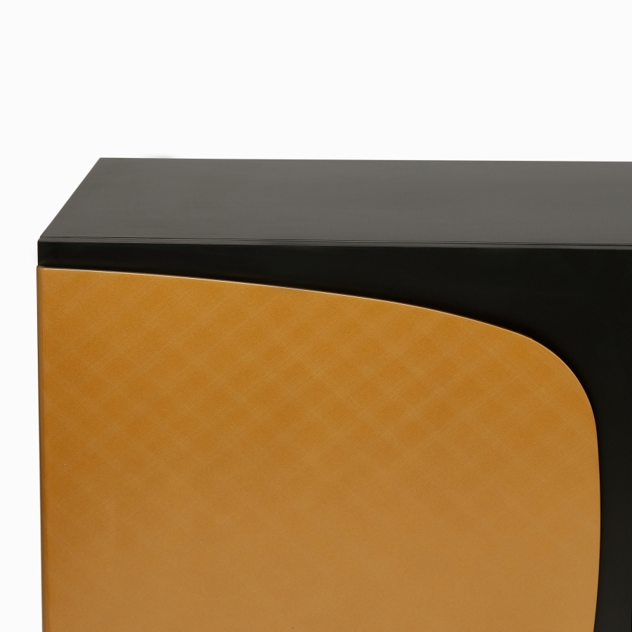Дополнительный цвет каркаса — золотой. Золотые акценты добавляют тумбе изысканности и шарма, создавая эффектный контраст с черным цветом.