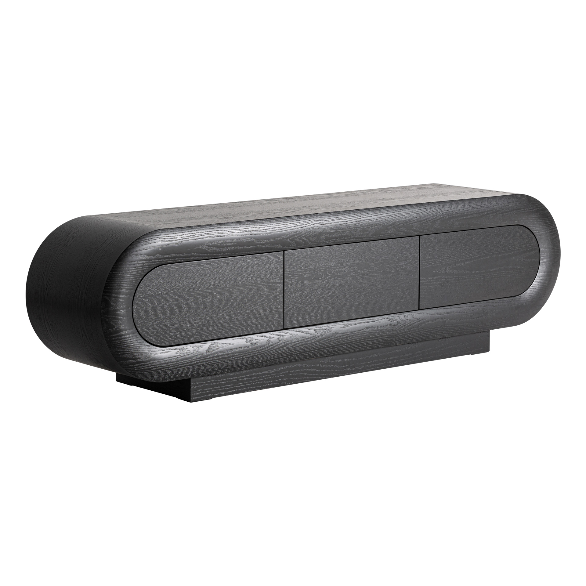 Тумба под телевизор Chamonix сочетает в себе эстетику ар-деко и минималистичный дизайн. Изготовленная из черного дуба, ее овальная форма и четкие линии создают визуальное спокойствие. Изысканный и сбалансированный предмет мебели, который добавит порядка и индивидуальности гостиной.