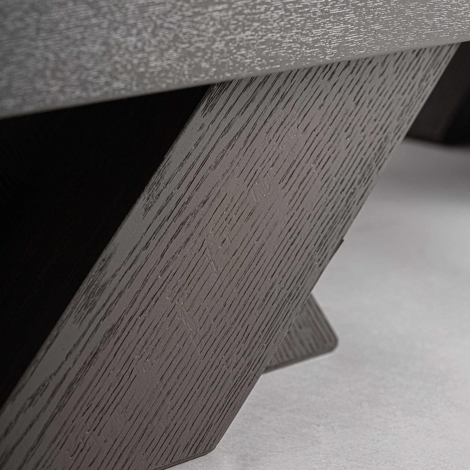 Тумба под телевизор Rize от VICAL выполнена в стиле ар-деко с геометрическим дизайном из черного дуба.