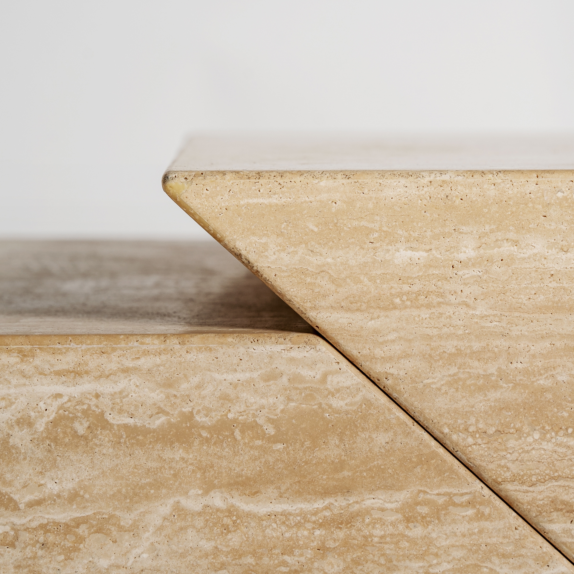 Тумба под телевизор Thiennes, светло-коричневого цвета, в стиле арт-деко. Изготовлен из травертина. Предмет мебели изготовлен из натуральных материалов, поэтому каждый из них будет эксклюзивным, со своими уникальными оттенками и текстурами. Пористость и неоднородность материала не считаются браком.