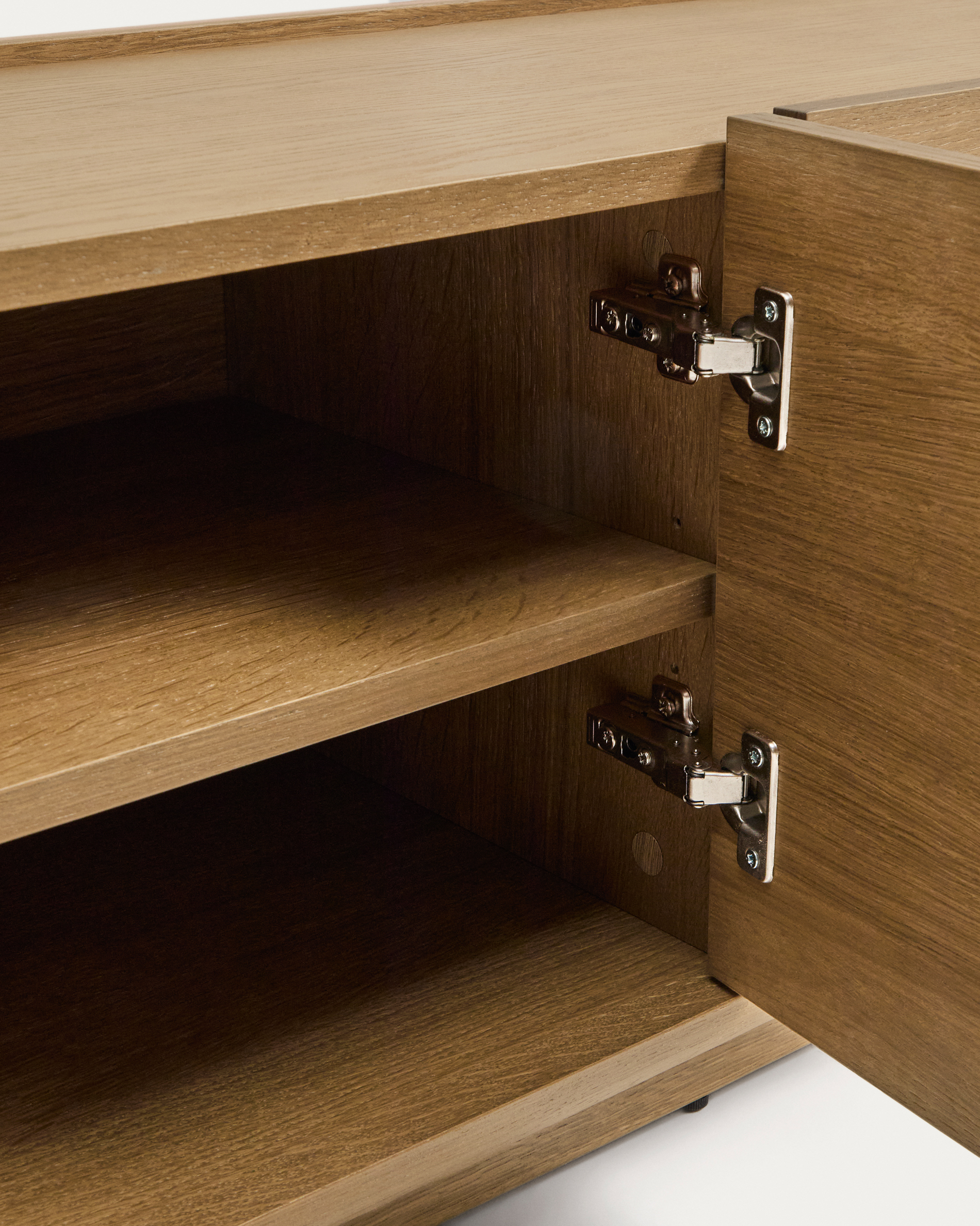 Коллекция Arelida изготовлена из дубового шпона и массива дуба с коричневой отделкой, которая подчеркивает текстуру и рисунок древесины, придавая каждому изделию теплоту и сбалансированный вид. Плавные линии и закругленные края определяют изысканный дизайн, приятный на ощупь. Она оснащена системой плавного закрывания и регулировочными элементами на основании для выравнивания неровностей пола. Локальное производство в Европе и ручная работа способствуют снижению выбросов CO₂ и обеспечивают более экологичное производство.