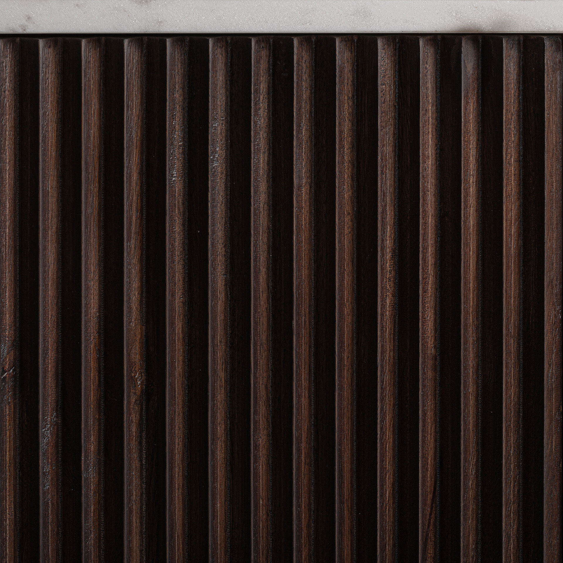 Тумба под телевизор Cenves, коричневого цвета, стиль арт-деко. Изготовлен из дерева манго в сочетании с мрамором.