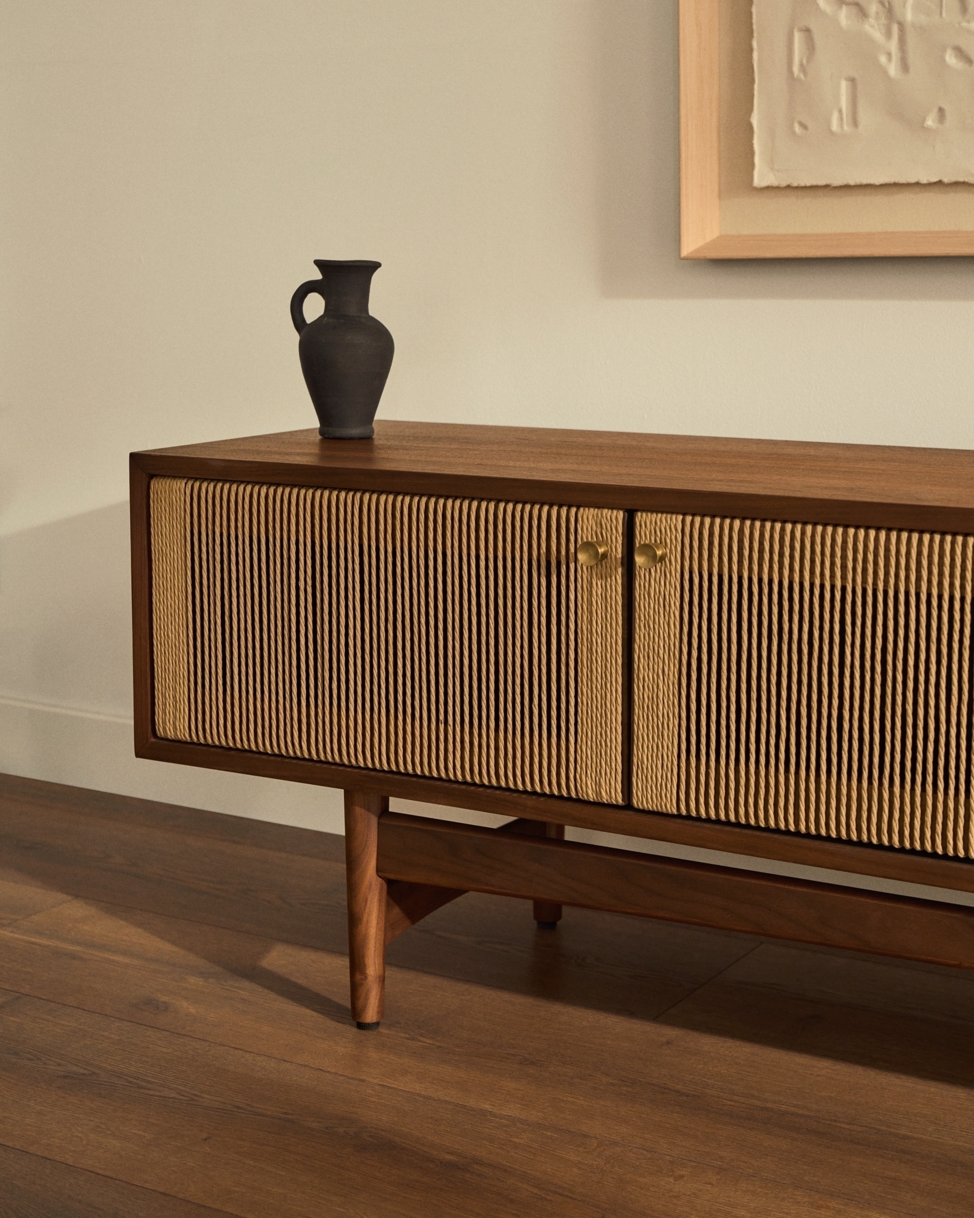 Обладая вневременной привлекательностью, Elan сочетает в себе теплоту орехового дерева с дизайном с чистыми линиями. Каждое изделие представляет собой прекрасное произведение искусства, где детали из шнура ручной работы придают вашему пространству нотку деревенской элегантности.