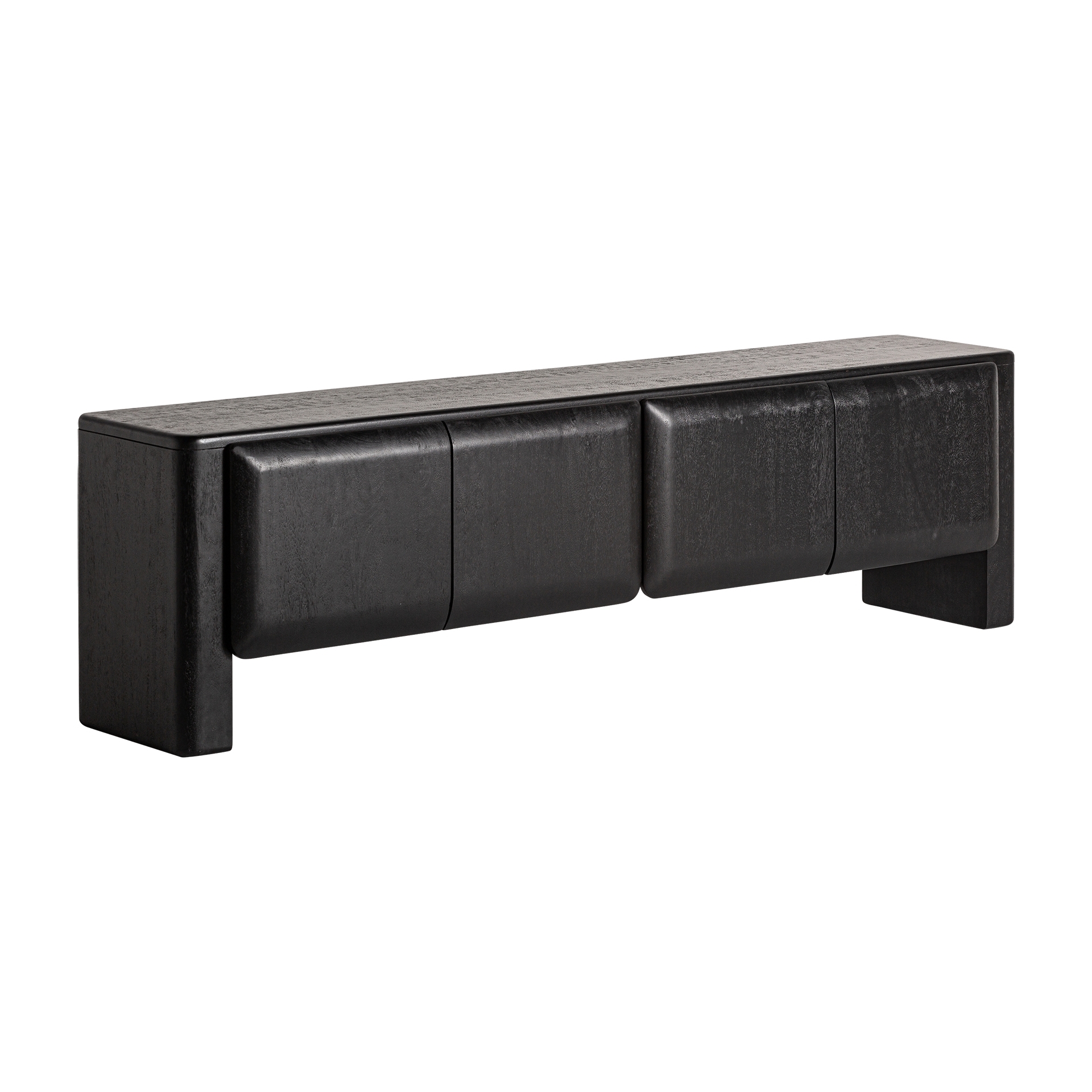 Тумба под ТВ Норфолк, в черном цвете, стиль ар-деко. Изготовлен из дерева манго.