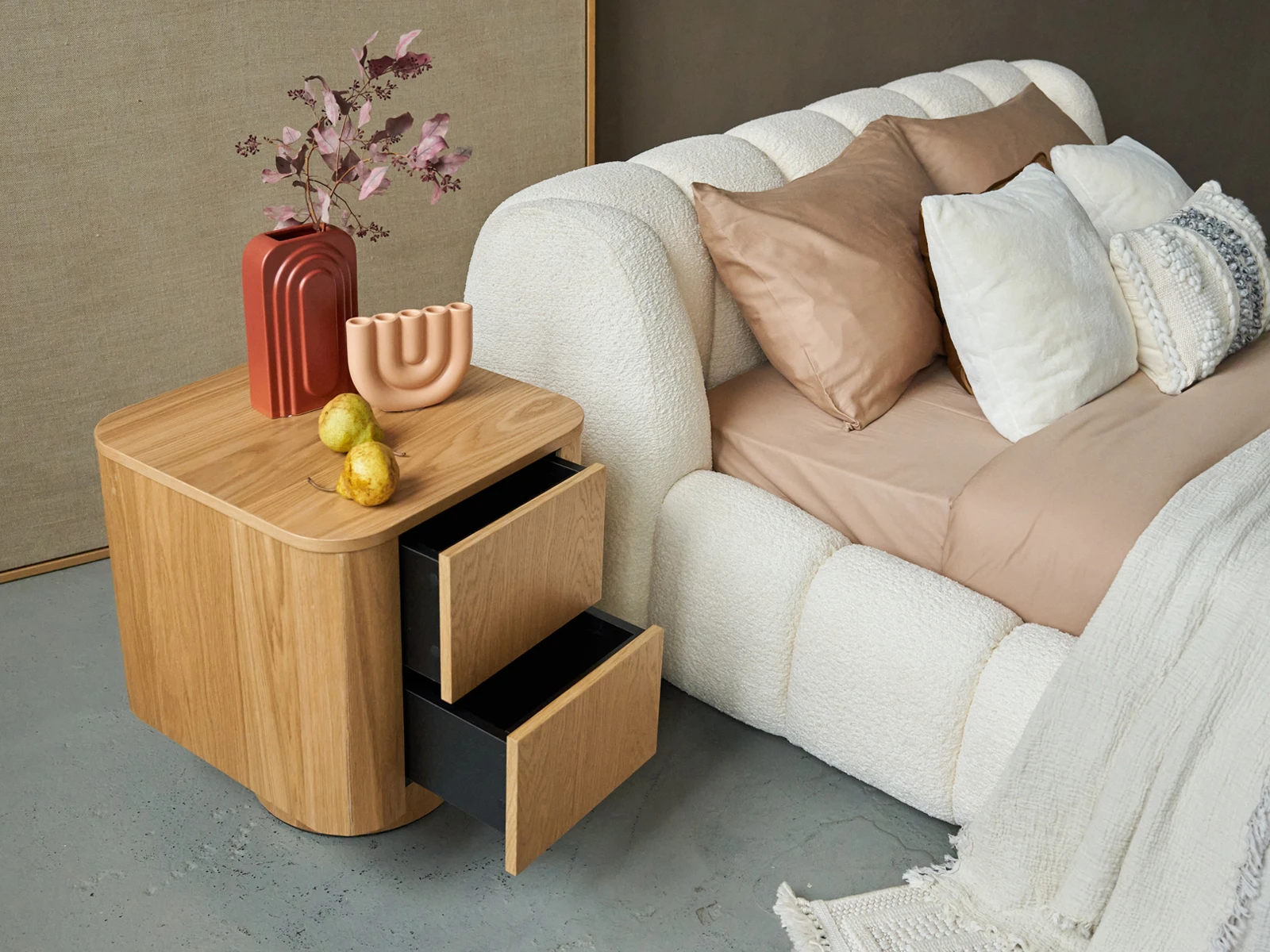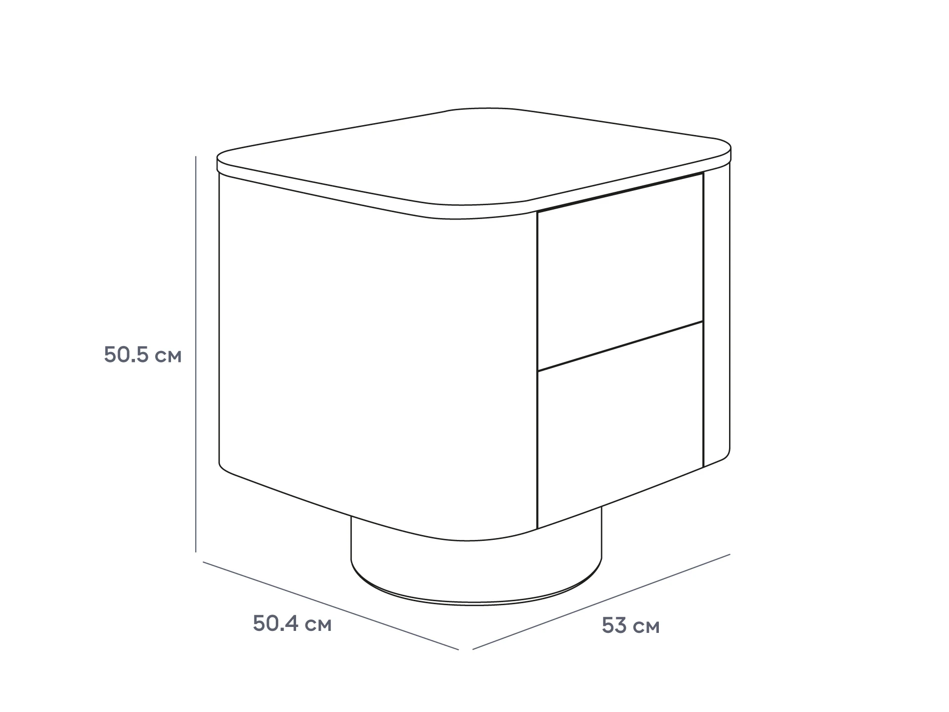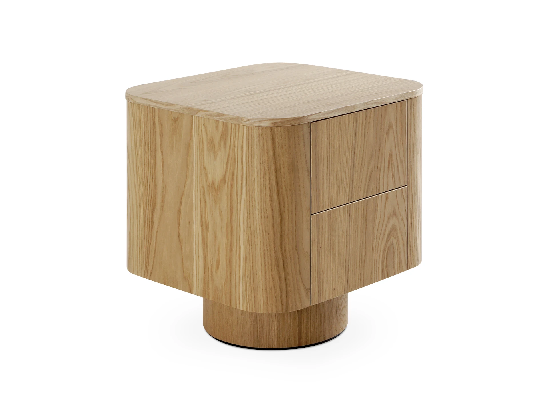 Kota — скульптурная функциональная тумба с небанальным дизайном. В центре которого — геометрические контрасты. Круглое основание невысоко приподнимает объёмный прямоугольный корпус с закругленными углами. Плавные линии отвечают за эргономику и безопасность. Тумба Kota может занять место у изголовья кровати. В двух выдвижных ящиках, которые открываются по принципу «нажал-открыл», удобно хранить нужные вещи. А на поверхности можно расположить декор, светильник, книгу.