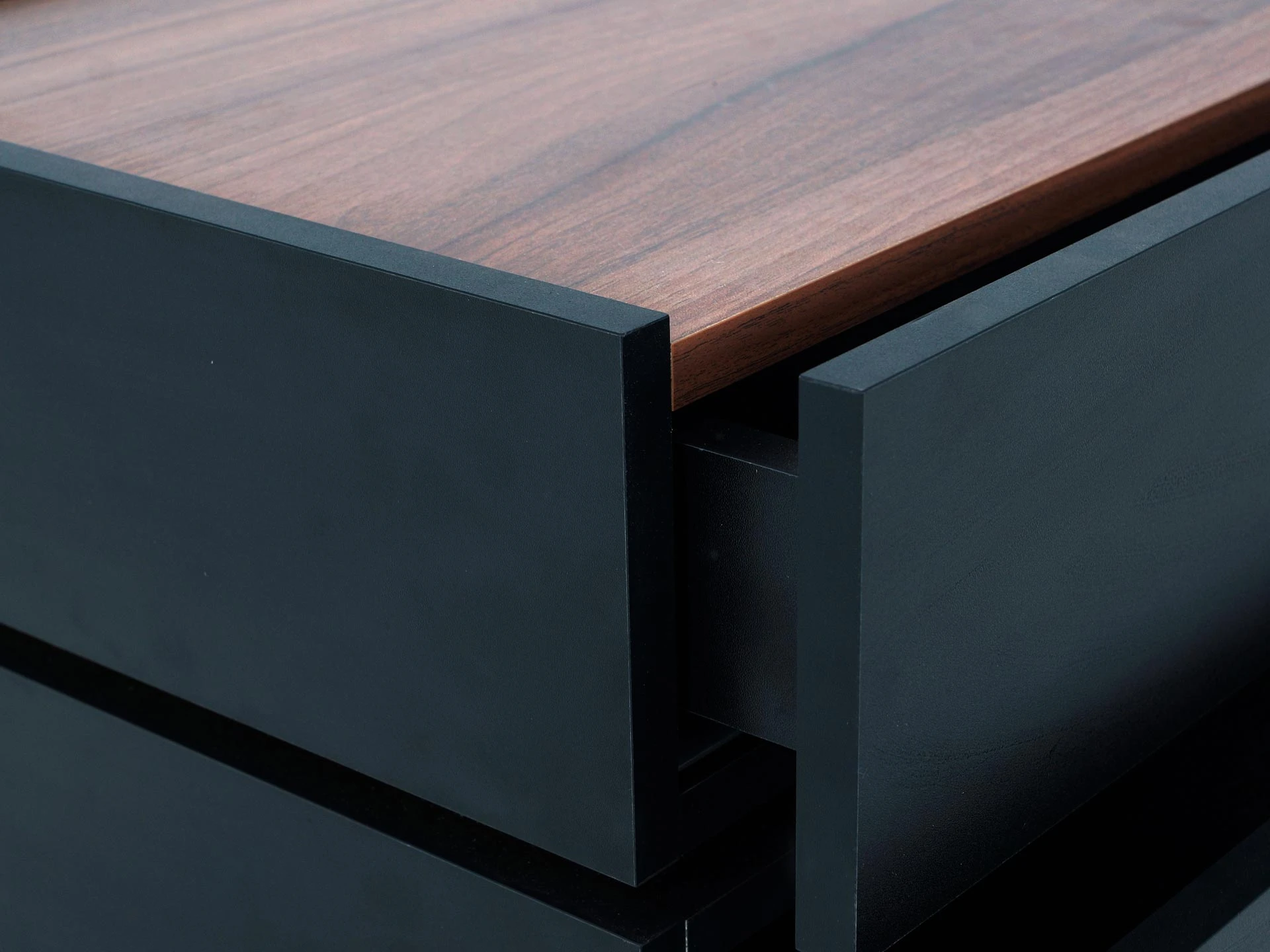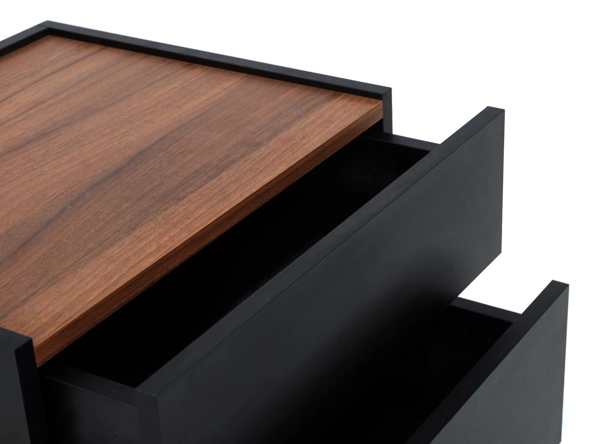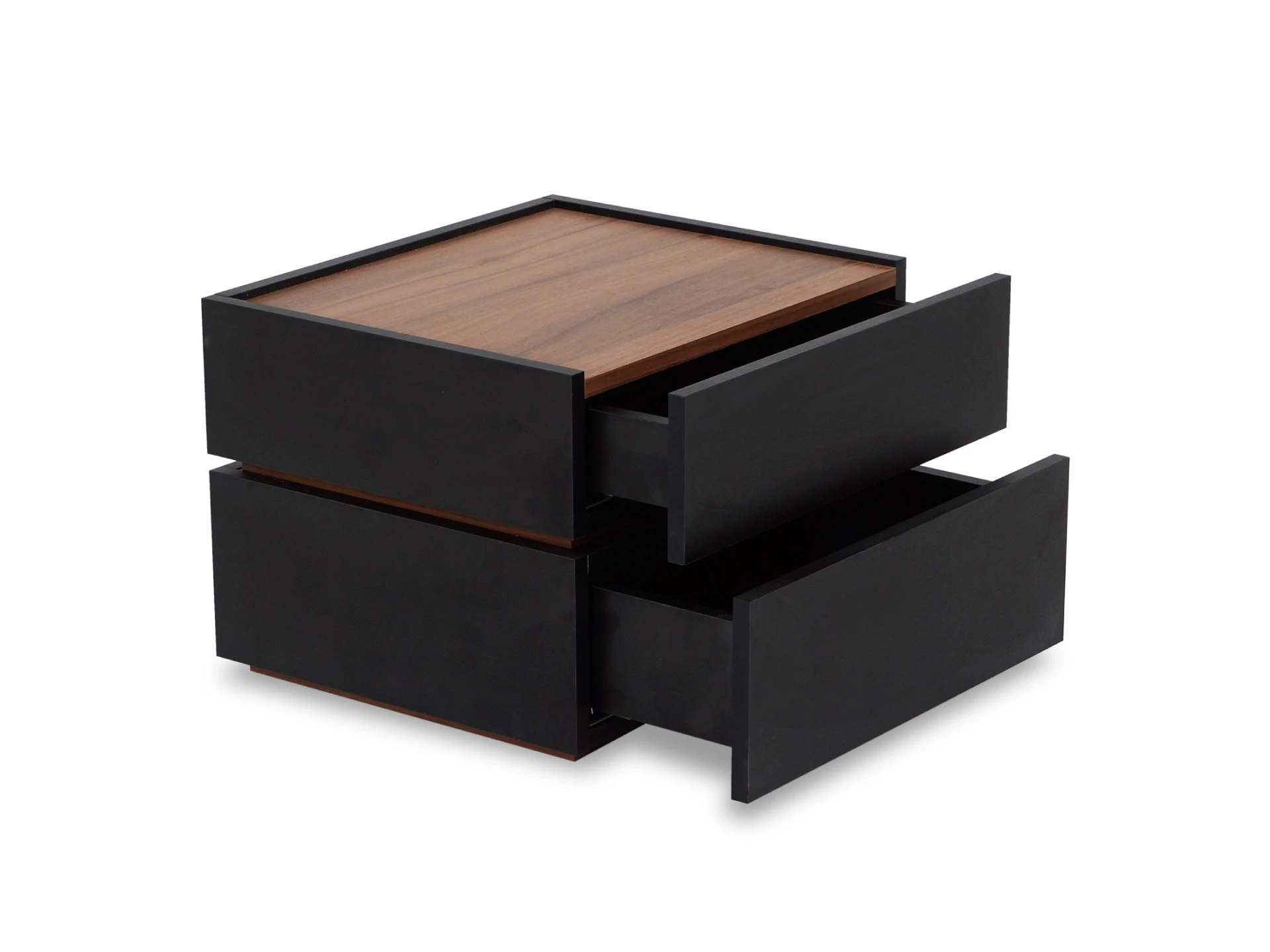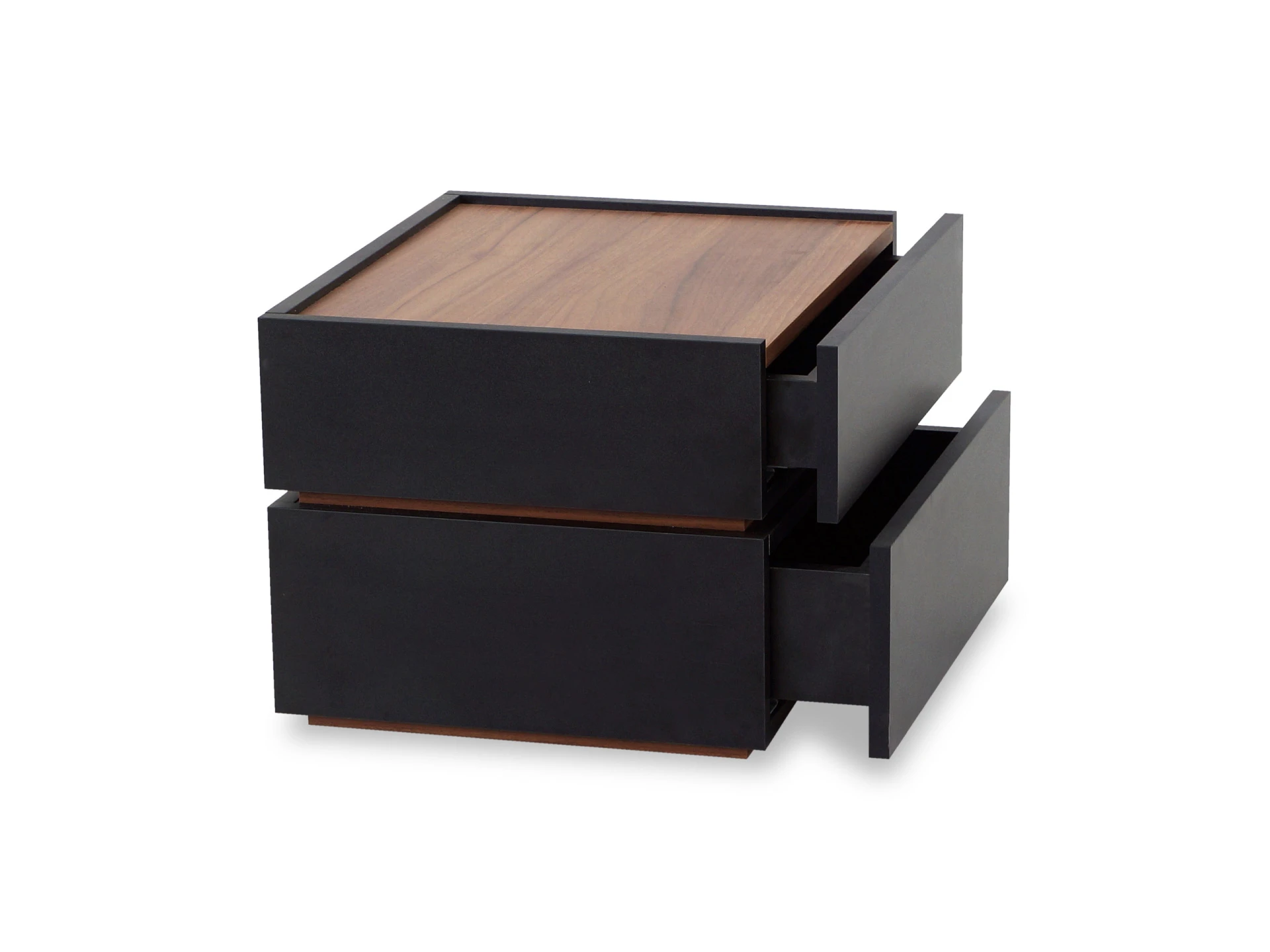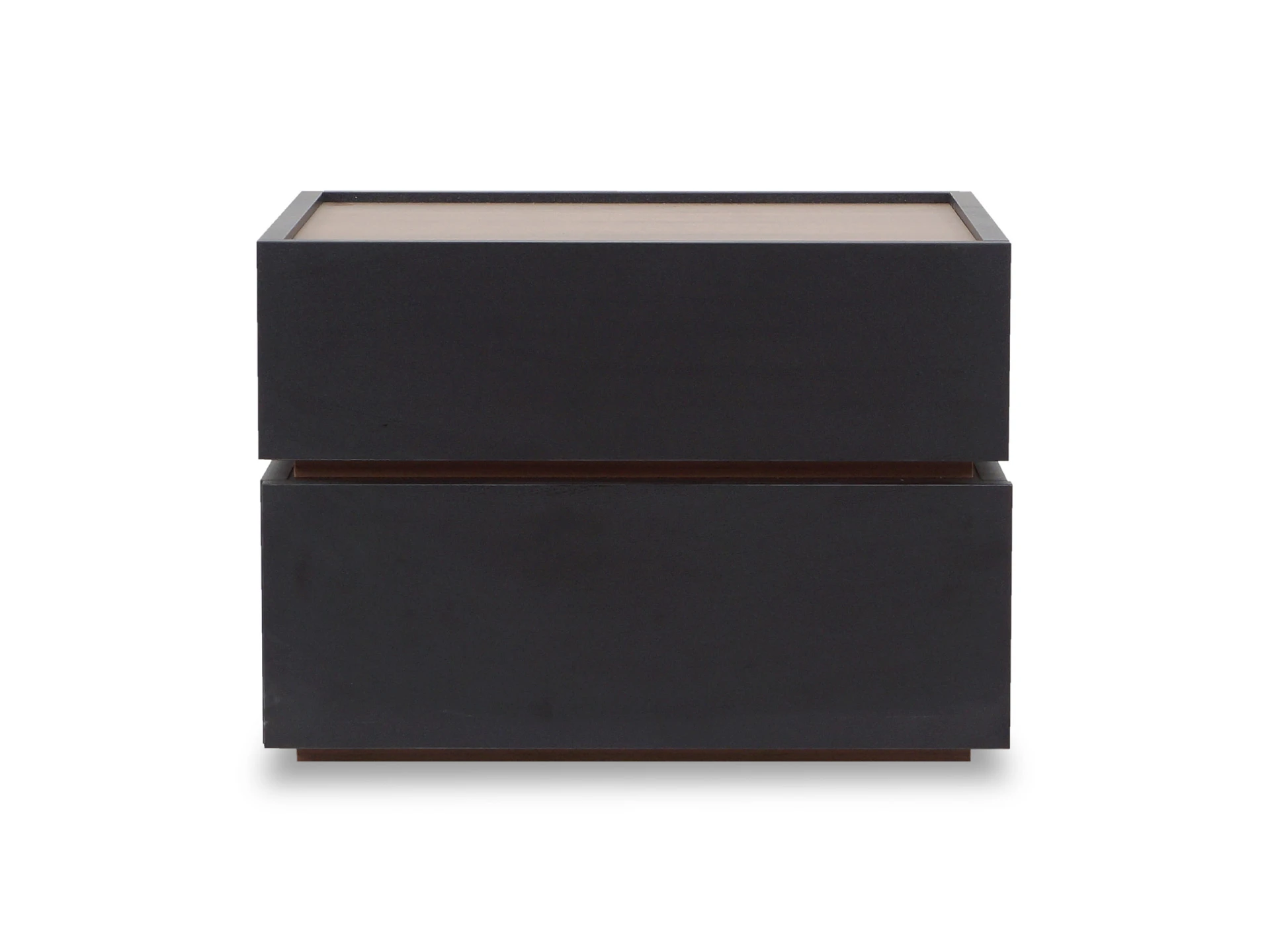 Тумба прикроватная с двумя ящиками. Выполнена из ЛДСП, дно ящиков ДВПО. Ящики на скрытых направляющих Push to open. Наличие фетровых подпятников.