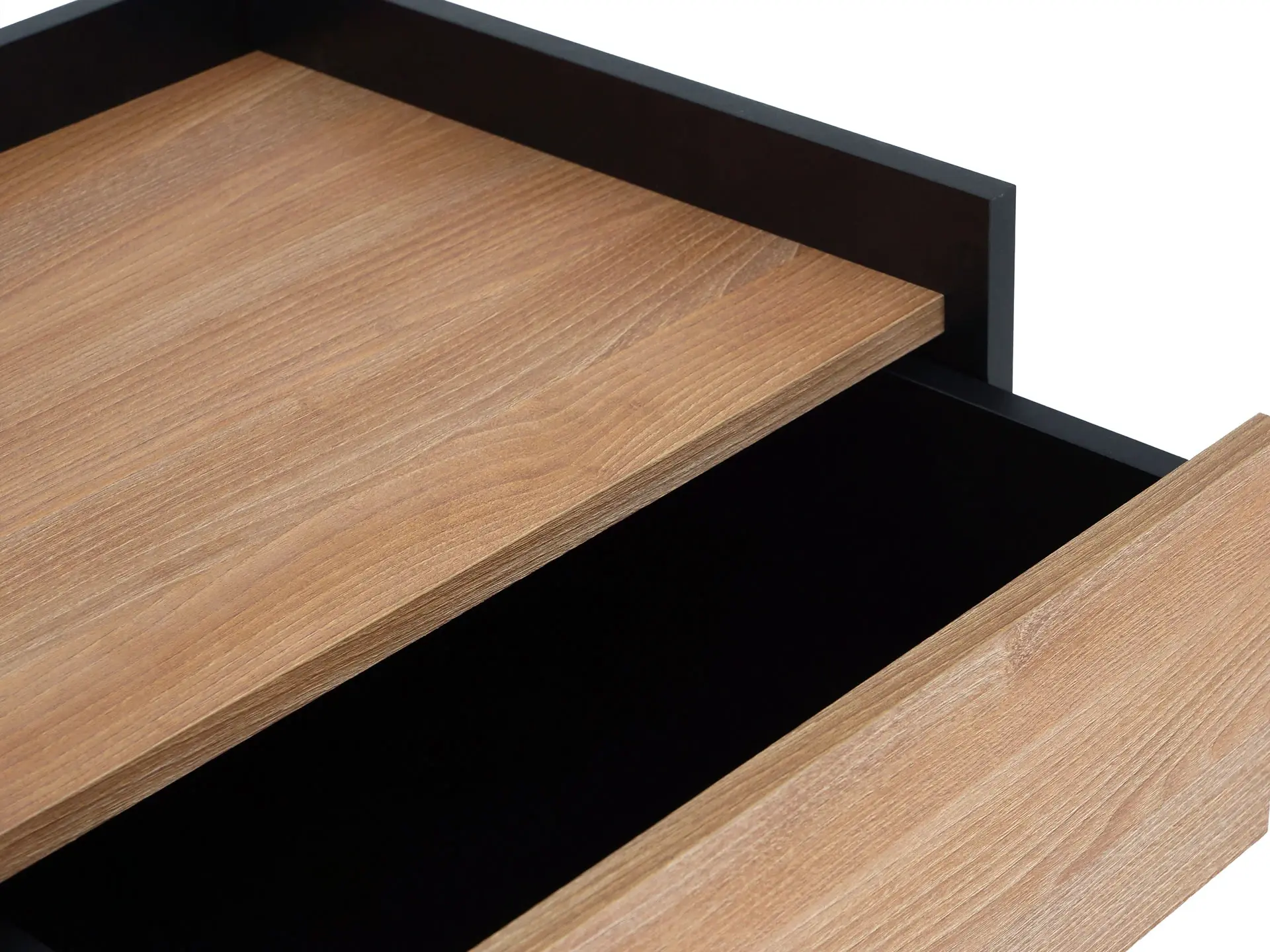 Тумба включает в себя рабочую поверхность и расположенным ниже по центру отделением с выдвижным ящиком.